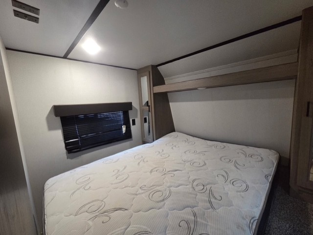 With sleeping for nine, this Keystone Hideout is the perfect camper for a larger family to enjoy. This model offers a full bathroom where you can easily and privately get ready for the day. Sleeping space for everyone can be found with the set of double-size bunks, a queen-size bed in the private bedroom, a booth dinette, and a sofa. Throughout this model you will find shelf space, as well as overhead cabinets for all of your extra camping items, and the two bedroom closets will come in handy for holding onto those extra sweaters and hiking boots. In the evening if the weather is nice, you will want to sit out under the lighted adjustable power awning and enjoy the scenic sunset together!
