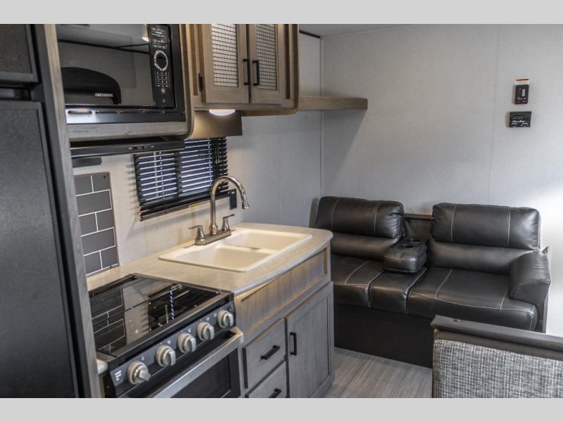 For any trip, whether near or far, you will want a Hideout fifth wheel, travel trailer, or toy hauler by Keystone RV. These models are lightweight which makes them easy to hook up and tow. Just load up your belongings and head out for a weekend away in your own Hideout retreat. A few key features inside of each model include: pleated shades in the living area, a high-rise faucet in the kitchen, and full-strutted storage under the master bed, and the exterior is just as indulgent with its powder-coated I-beam frame, exterior speakers, black radius window frames, Tru-fit™ five point slide-out construction, and the lighted adjustable power awning. Don't wait any longer to enjoy your own private hideout with the Keystone Hideout!