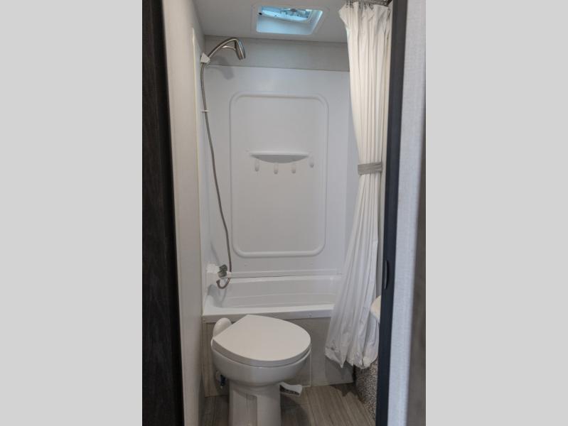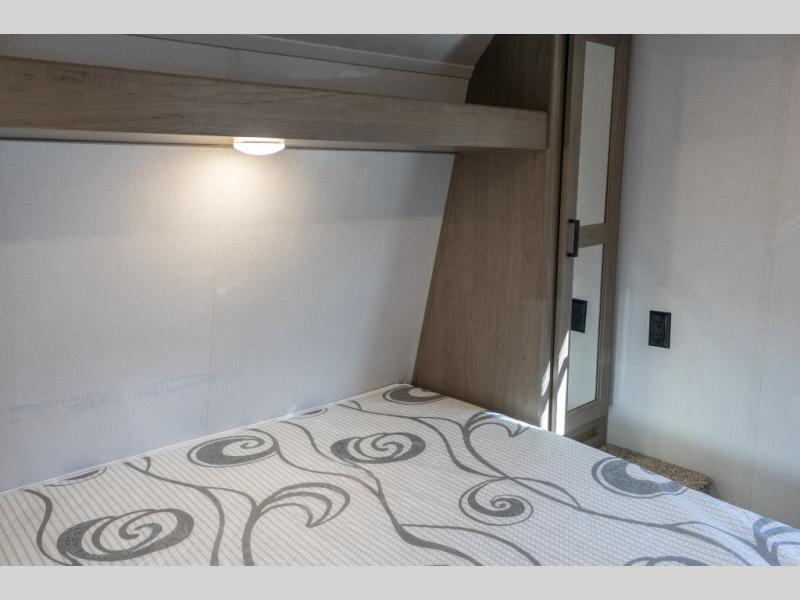 With sleeping for nine, this Keystone Hideout is the perfect camper for a larger family to enjoy. This model offers a full bathroom where you can easily and privately get ready for the day. Sleeping space for everyone can be found with the set of double-size bunks, a queen-size bed in the private bedroom, a booth dinette, and a sofa. Throughout this model you will find shelf space, as well as overhead cabinets for all of your extra camping items, and the two bedroom closets will come in handy for holding onto those extra sweaters and hiking boots. In the evening if the weather is nice, you will want to sit out under the lighted adjustable power awning and enjoy the scenic sunset together!