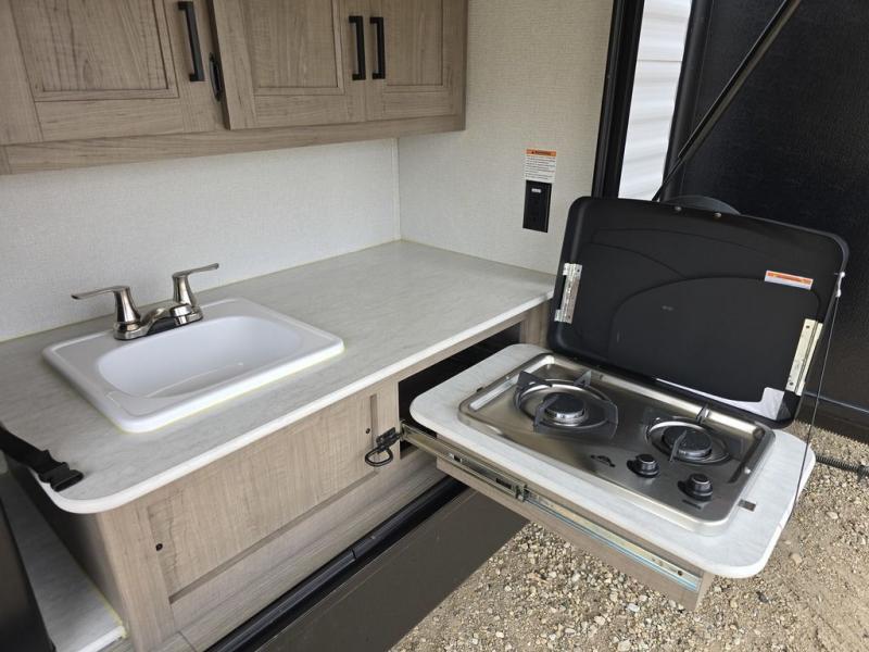 For any trip, whether near or far, you will want a Hideout fifth wheel, travel trailer, or toy hauler by Keystone RV. These models are lightweight which makes them easy to hook up and tow. Just load up your belongings and head out for a weekend away in your own Hideout retreat. A few key features inside of each model include: pleated shades in the living area, a high-rise faucet in the kitchen, and full-strutted storage under the master bed, and the exterior is just as indulgent with its powder-coated I-beam frame, exterior speakers, black radius window frames, Tru-fit™ five point slide-out construction, and the lighted adjustable power awning. Don't wait any longer to enjoy your own private hideout with the Keystone Hideout!