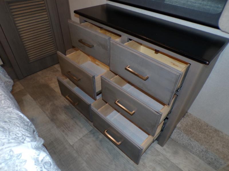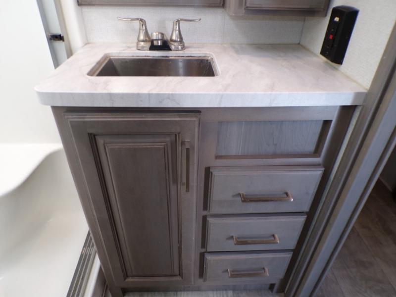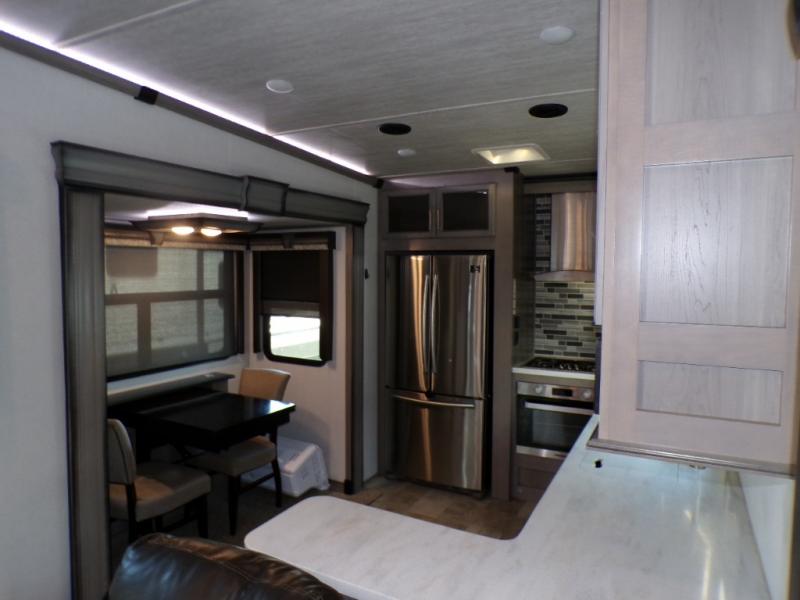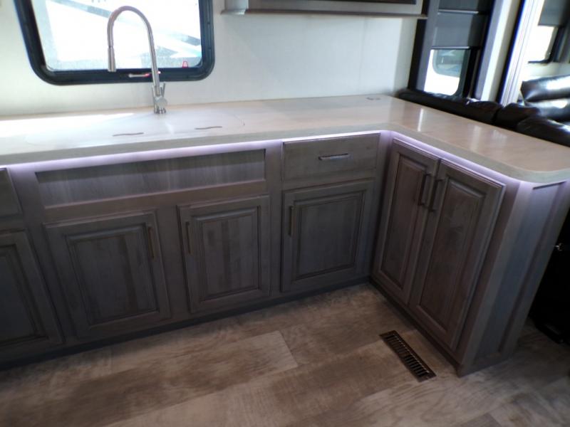 When packing for your next trip in a Keystone Montana luxury fifth wheel you will appreciate the enormous drop frame pass-through storage compartment, the full extension drawer guides, the MORyde "Step Above" entry steps with strut assist, and the LED motion sensor light at the inside steps. The Residential Living package adds more upgraded features such as the motion sensor LED light in the bedroom closet, the easy sweep vinyl flooring, the exclusive KeyTV satellite prep, and the in-floor straight line heat duct system. The Four Season Living package provides insulated in-floor water lines, two attic vents for cross-ventilation, insulated and heated holding tanks and dump valves, and more so you can travel any season you like. It's time to find the luxury fifth wheel you can enjoy for years to come, choose a Montana by Keystone today!