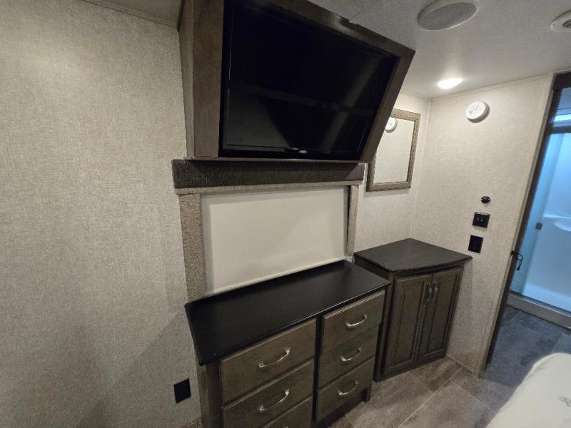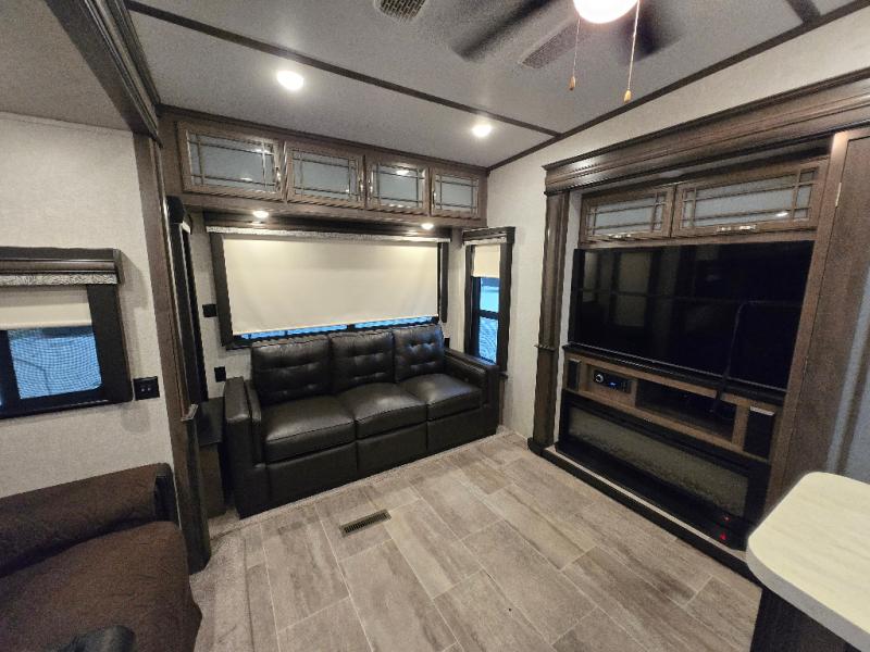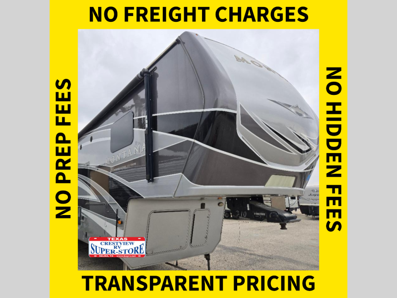 When packing for your next trip in a Keystone Montana luxury fifth wheel you will appreciate the enormous drop frame pass-through storage compartment, the full extension drawer guides, the MORyde "Step Above" entry steps with strut assist, and the LED motion sensor light at the inside steps. The Residential Living package adds more upgraded features such as the motion sensor LED light in the bedroom closet, the easy sweep vinyl flooring, the exclusive KeyTV satellite prep, and the in-floor straight line heat duct system. The Four Season Living package provides features such insulated in-floor water lines, two attic vents for cross-ventilation, insulated and heated holding tanks and dump valves, and more so you can travel any season you like. It's time to find the luxury fifth wheel you can enjoy for years to come, choose a Montana by Keystone today!