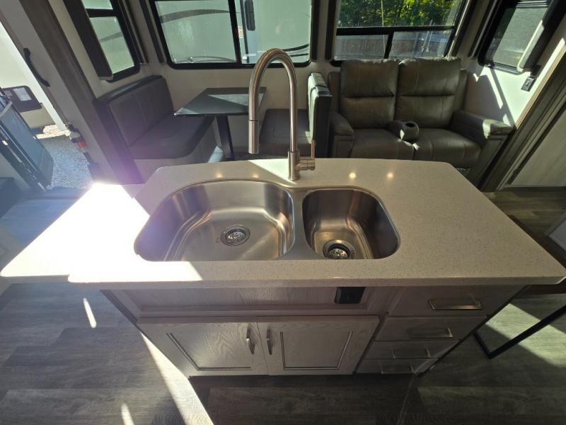Kitchen Island – extra prep space and sink in the heart of the RV