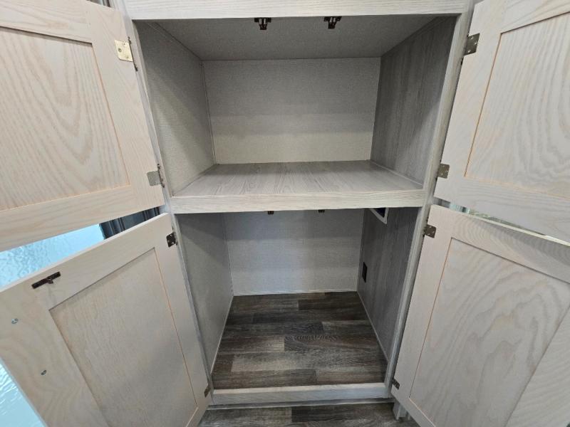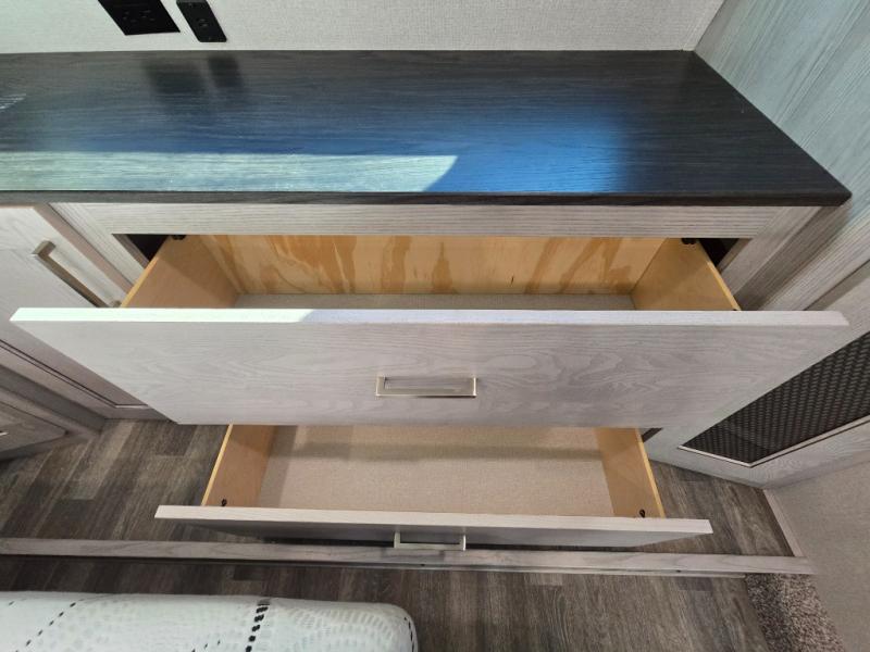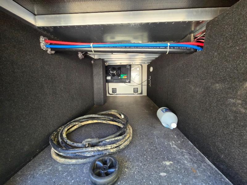 Luxury Towing & Setup – Dexter E-Z Lube axles, Max Turn front cap with Hitch Vision, drop-frame pass-through storage