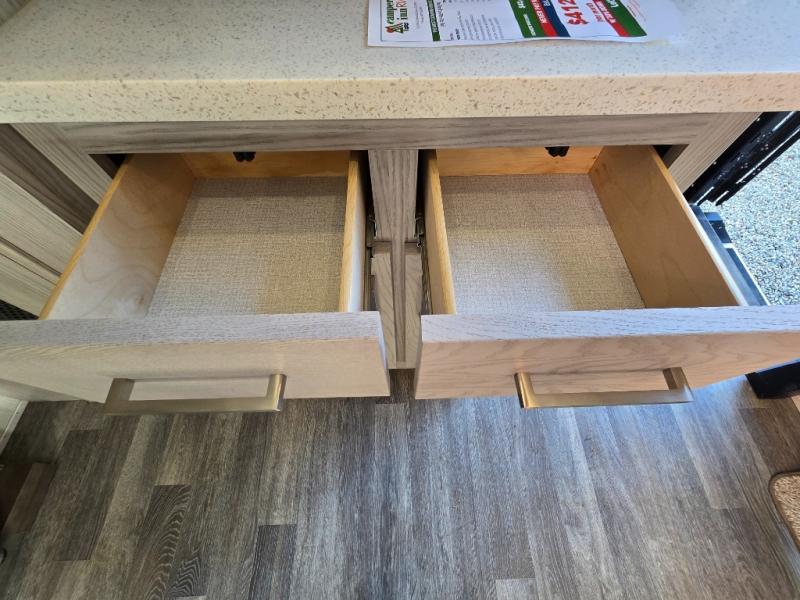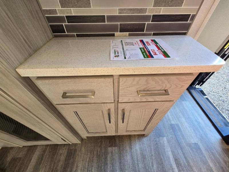 Spacious Interior – 78" tall main slide outs, flush-mounted LED lighting, seamless countertops