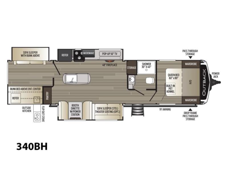 Keystone Outback travel trailer 340BH highlights: