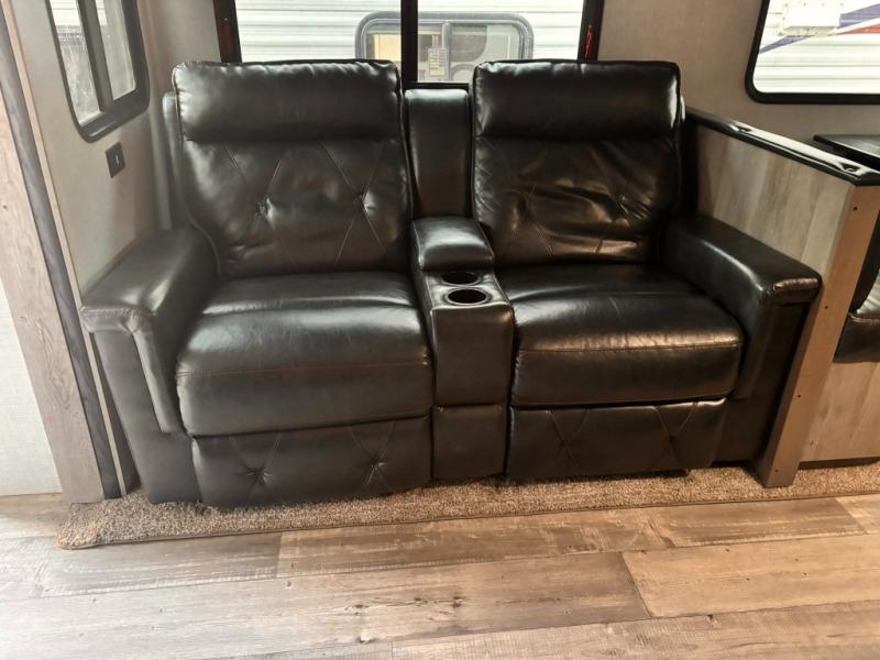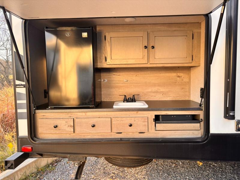 Let this Outback travel trailer be your family's new favorite vacation destination! Whether it is in the rear private bunkhouse or in the front private bedroom, you will find plenty of space to sleep nine people throughout this trailer, and because this unit comes with a built-in kennel, you will also have plenty of space for your pets to feel comfortable while you travel. With the three slides that have been included in this model, you will be able to rest easily in the central living area on the sofa sleeper or booth dinette while you charge your computer or cell phone at the power station.
