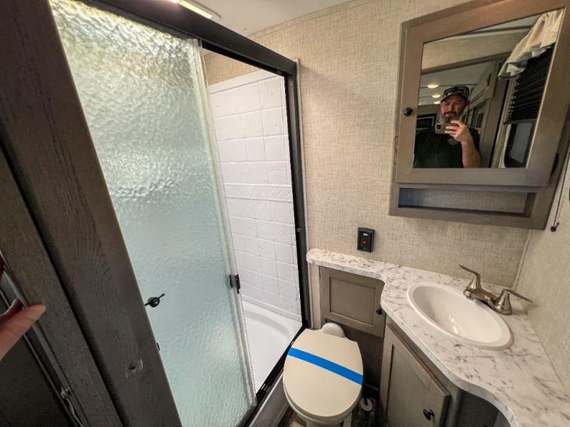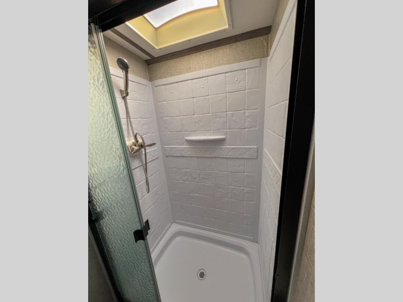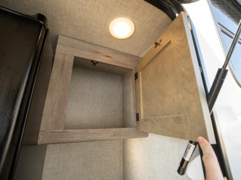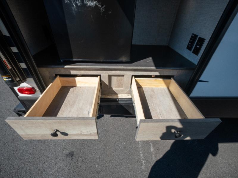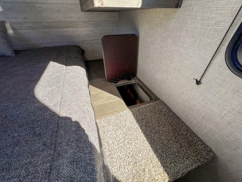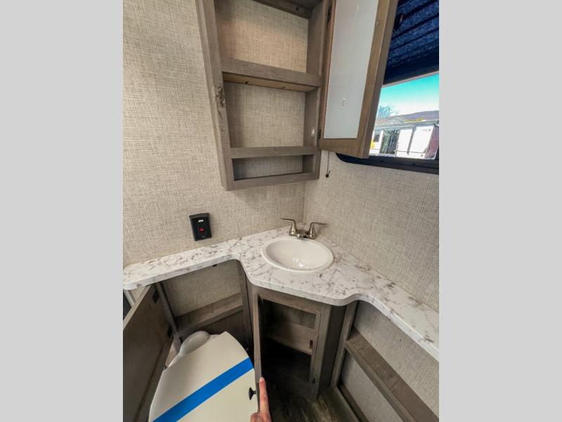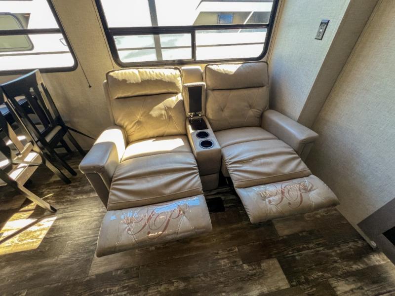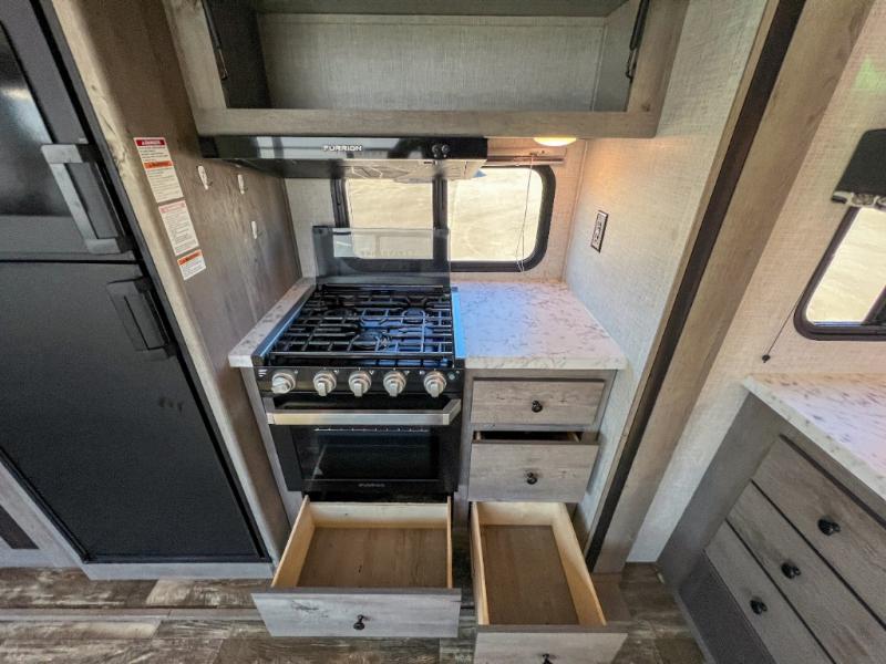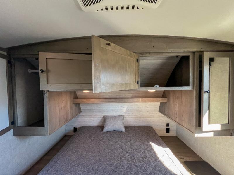 This Outback Ultra Lite travel trailer is perfect for couples who enjoy getting away to the great outdoors. You will be the envy of every campground because of all of the exceptional amenities that come included in this trailer, like the full rear bath with a sliding barn door, the built-in pet kennel underneath the queen-size bed in the private bedroom, and the pull-out trash can in the kitchen. You will also enjoy relaxing together each night on the sofa sleeper or choose the optional theater seating in its place, as you watch a show on the 50" TV.