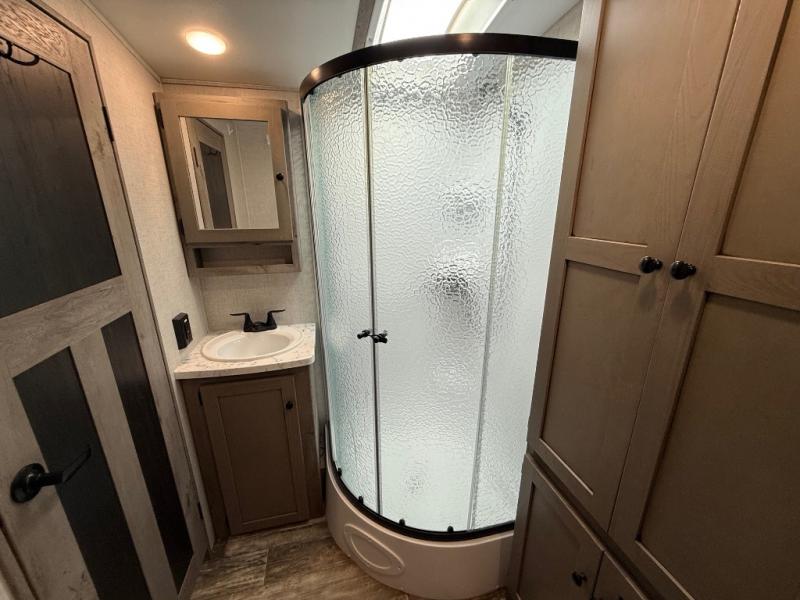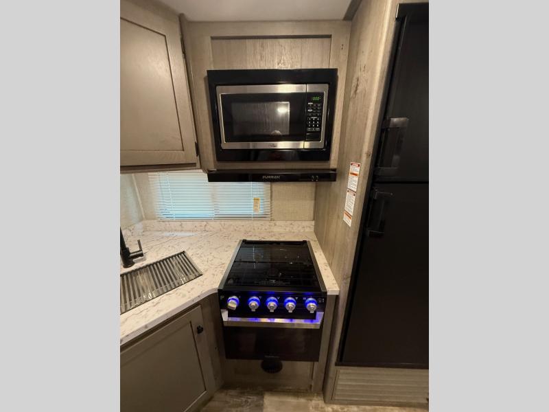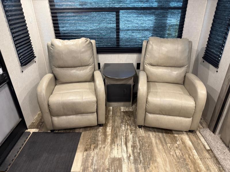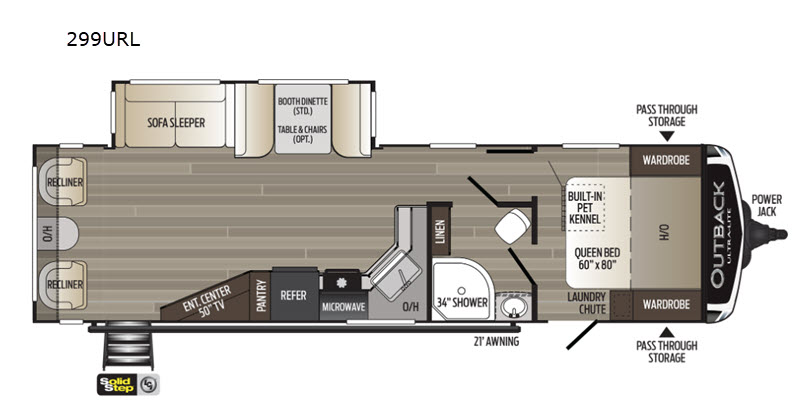 Just imagine how fun, easy, and convenient camping can be in this Outback Ultra Lite travel trailer. You will find the second entry door into the travel trailer allows you to enter the master suite quickly to use the bathroom, and the main entrance will have you sitting in one of the two recliners to rest after a long walk around the campground. The USB charging port will allow everyone to keep their electronics charged for the whole trip, and the sofa sleeper and booth dinette will provide sleeping space for the kids or overnight guests when needed. The cook will love all the appliances in the full kitchen to make meals while away from home.