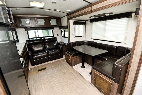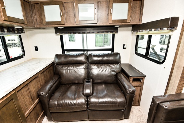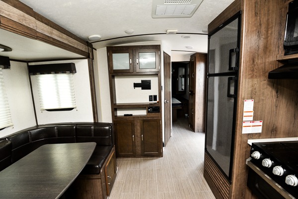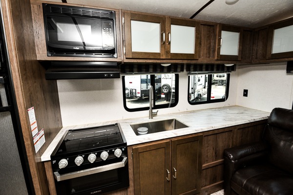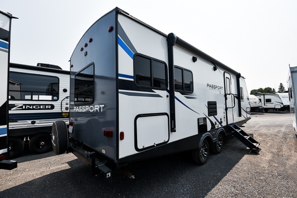 Have you been wondering how you can travel the country to see new places without leaving all your comforts of home behind? This Passport travel trailer will have you relaxing on a tri-fold sofa sleeper or on your own queen bed anywhere you decide to set up camp. From watching the flat screen HDTV in the rear living area and making meals in the full kitchen to eating at the U-shaped dinette slide, you will find something to love each time you hitch up. You might even choose to add the optional theater seats in place of the sofa.