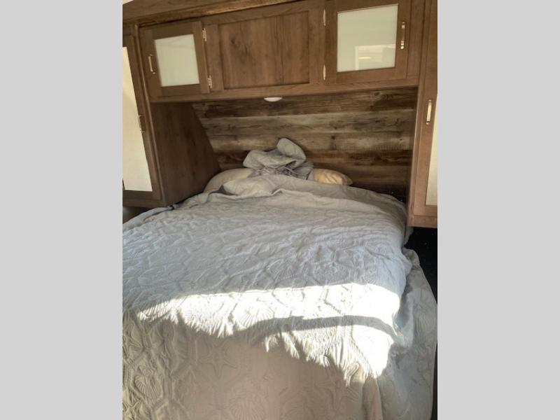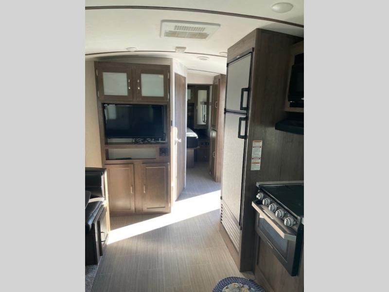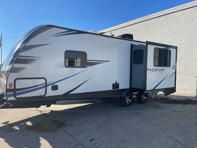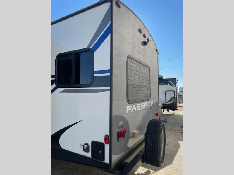 Have you been wondering how you can travel the country to see new places without leaving all your comforts of home behind? This Passport travel trailer will have you relaxing on a tri-fold sofa sleeper or on your own queen bed anywhere you decide to set up camp. From watching the flat screen HDTV in the rear living area and making meals in the full kitchen to eating at the U-shaped dinette slide, you will find something to love each time you hitch up. You might even choose to add the optional theater seats in place of the sofa.