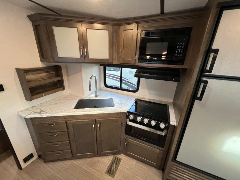 The Passport GT Series travel trailers by Keystone RV are lightweight and towable behind many SUVs and half-ton trucks. Each model comes with Load Equalization axles that reduce sway for an easy tow, and the unit has an enclosed and heated underbelly for four seasons of traveling. Once at your destination, you can walk up the MORryde Step Above entry steps and grab onto the fold-away exterior grab handle by the main door for support. You will find several residential-style features inside, like the durable Armstrong vinyl flooring, the residential interior doors, and the stainless steel sink with a pull-down faucet. Plus, you will also enjoy the extra space from the vaulted ceiling. Choose your favorite Passport GT Series today and start going everywhere!