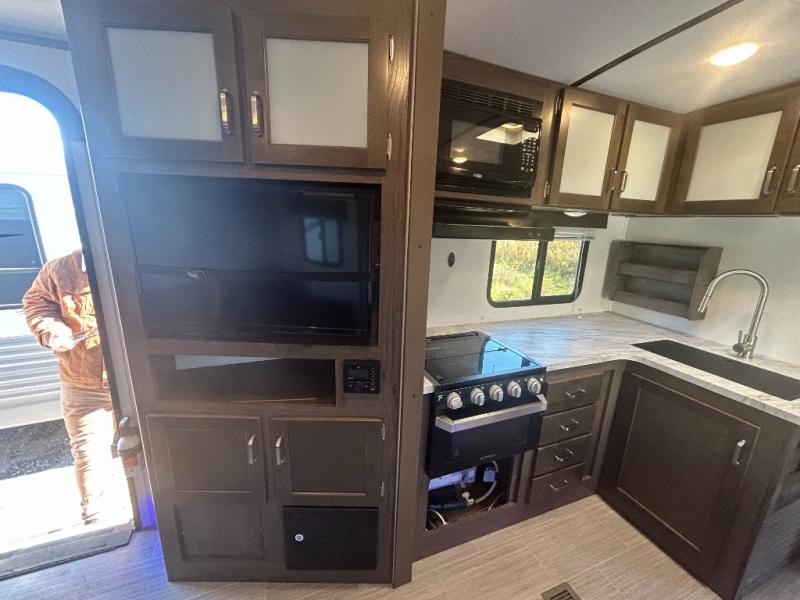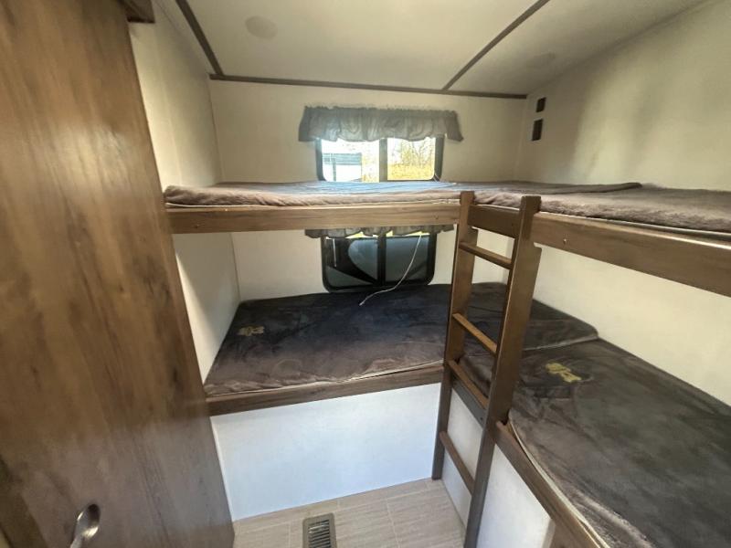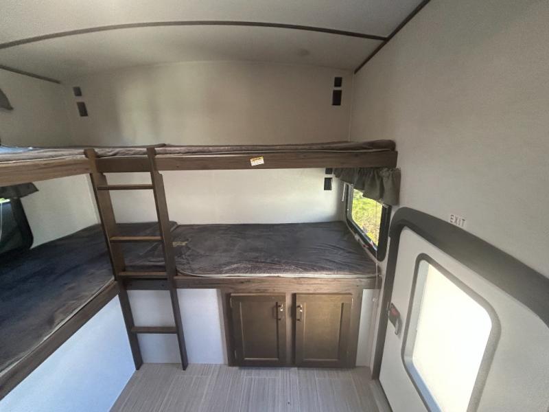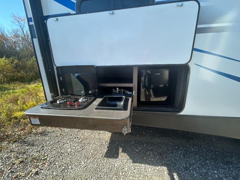 A master bedroom for you and your spouse and a private bunkhouse for the kids and their friends is what you will find in this Passport travel trailer. The kids will surely love picking from one of the four bunks to sleep on while you enjoy your own bedding in the private bedroom on the opposite side of this trailer. Of course, enjoying the outdoors is what you have been wanting, so why not cook at the outside kitchen when you aren't making meals inside with all the appliances provided. You might even play a board game at the U-shaped dinette, and there is also a full bathroom to stay refreshed, plus lots more to enjoy!