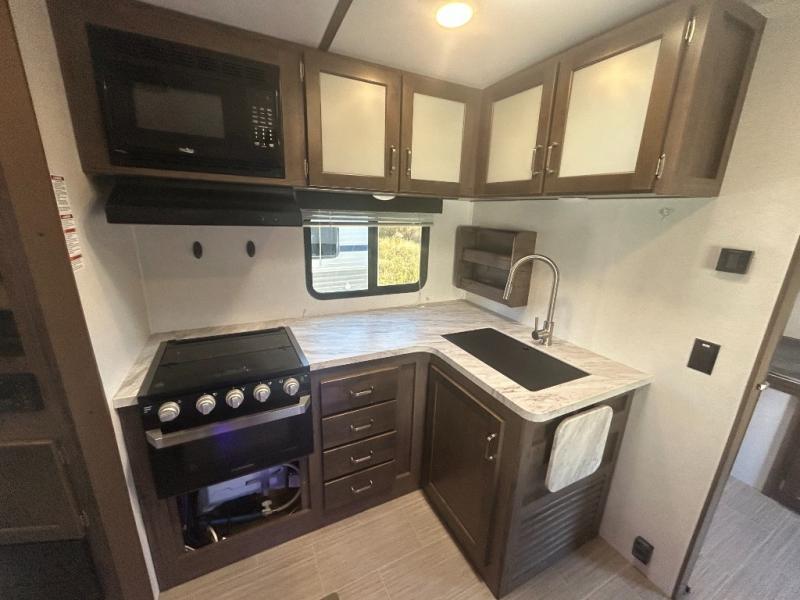 The Passport GT Series travel trailers by Keystone RV are lightweight and towable behind many SUVs and half-ton trucks. Each model comes with Load Equalization axles that reduce sway for an easy tow, and the unit has an enclosed and heated underbelly for four seasons of traveling. Once at your destination, you can walk up the MORryde Step Above entry steps and grab onto the fold-away exterior grab handle by the main door for support. You will find several residential-style features inside, like the durable Armstrong vinyl flooring, the residential interior doors, and the stainless steel sink with a pull-down faucet. Plus, you will also enjoy the extra space from the vaulted ceiling. Choose your favorite Passport GT Series today and start going everywhere!