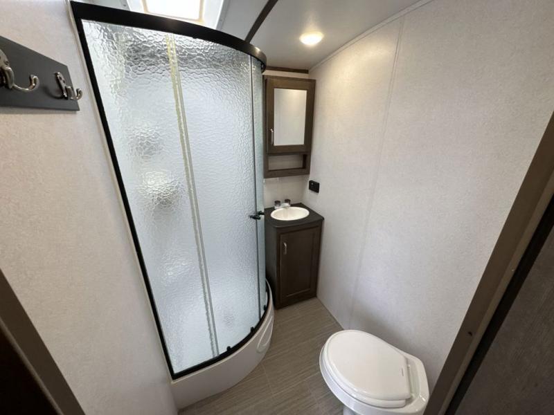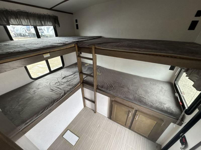 A master bedroom for you and your spouse and a private bunkhouse for the kids and their friends is what you will find in this Passport travel trailer. The kids will surely love picking from one of the four bunks to sleep on while you enjoy your own bedding in the private bedroom on the opposite side of this trailer. Of course, enjoying the outdoors is what you have been wanting, so why not cook at the outside kitchen when you aren't making meals inside with all the appliances provided. You might even play a board game at the U-shaped dinette, and there is also a full bathroom to stay refreshed, plus lots more to enjoy!
