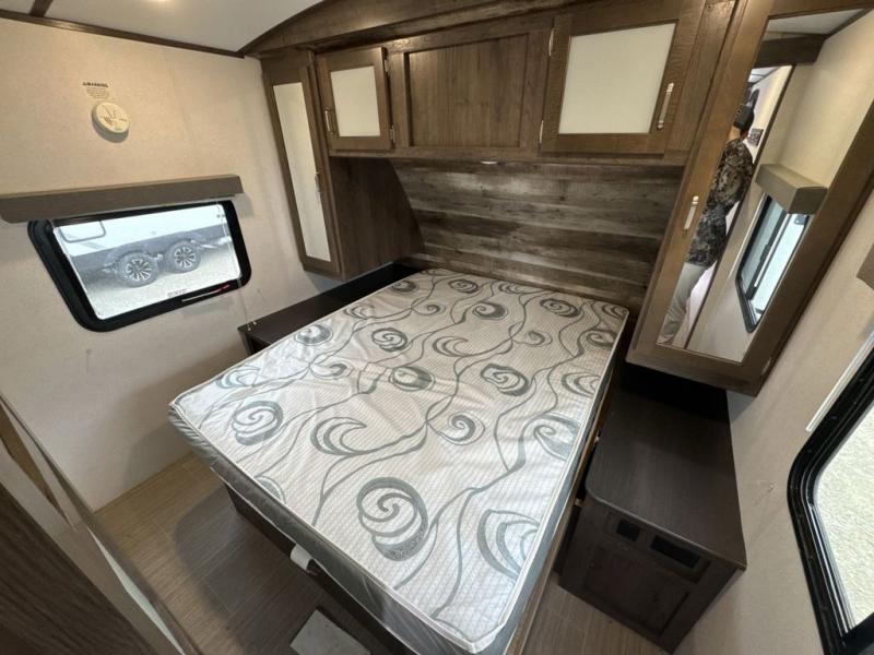 The Passport GT Series travel trailers by Keystone RV are lightweight and towable behind many SUVs and half-ton trucks. Each model comes with Load Equalization axles that reduce sway for an easy tow, and the unit has an enclosed and heated underbelly for four seasons of traveling. Once at your destination, you can walk up the MORryde Step Above entry steps and grab onto the fold-away exterior grab handle by the main door for support. You will find several residential-style features inside, like the durable Armstrong vinyl flooring, the residential interior doors, and the stainless steel sink with a pull-down faucet. Plus, you will also enjoy the extra space from the vaulted ceiling. Choose your favorite Passport GT Series today and start going everywhere!