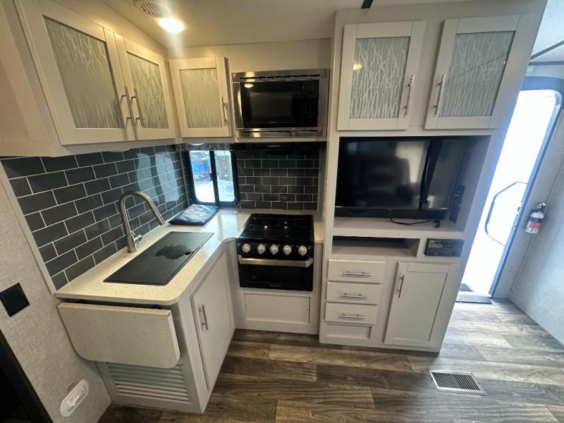 With each Premier Ultra Lite travel trailer by Keystone you will appreciate the detail to construction including the aggressive front profile for increased towability, the aluminum-frame side, front and rear walls and slide outs, the walkable roof, and the Darco moisture barrier plus the enclosed and heated underbelly to be able to travel during any season. Inside, you'll be pleased with the hand-painted solid wood cabinet doors, the vaulted ceiling, the USB charging ports in the bedroom, and the porcelain foot flush toilet. Don't wait to get away in style, choose a Premier today!