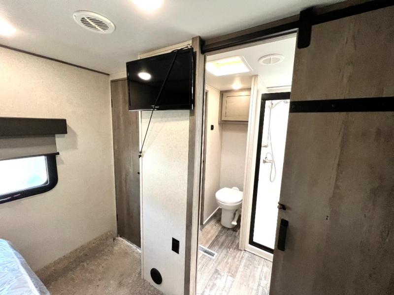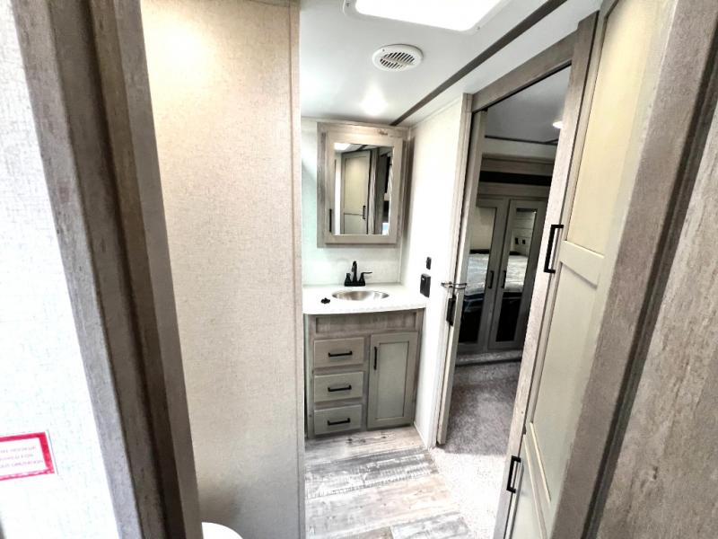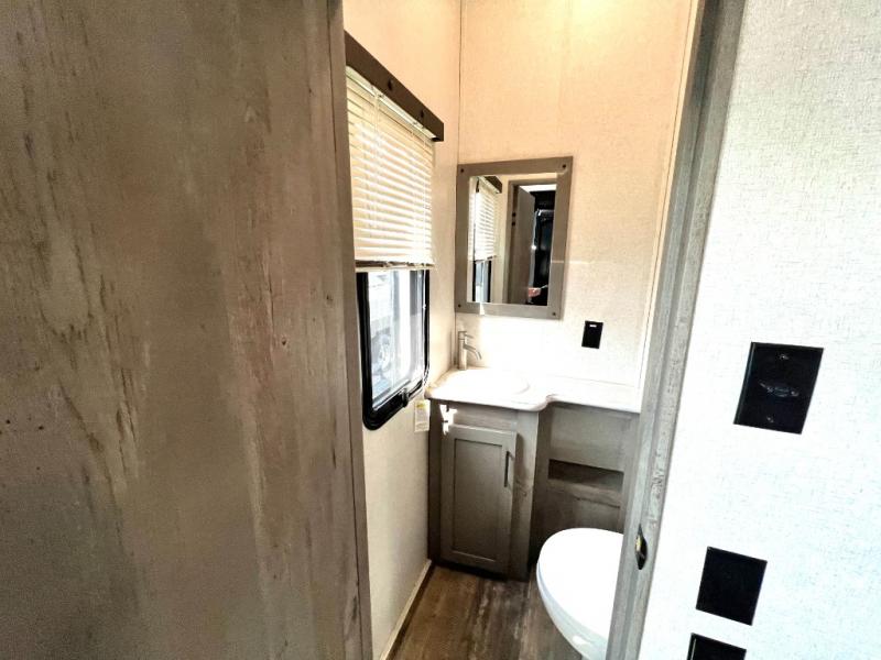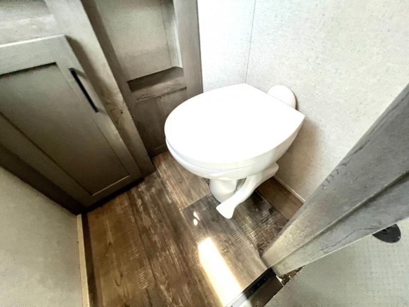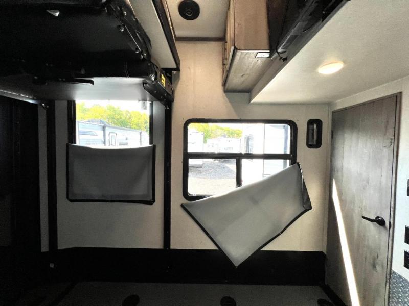 For a spectacular getaway each and every time you hit the trails, you need this Raptor toy hauler! The 11' separate garage with its electric bunk, dual opposing sofas, half bathroom, and second entry door will allow your guests to have their own retreat each night. You will find the queen-size bed in the front master suite to be your favorite place to relax for the evening. Even your child will have a place to call their own with the loft. For a midnight snack or a late-night movie, you can gather on the four-seat recliner or flip-up bar stools at the kitchen island and switch on the 50" LED TV. You will find a TV in the garage and the bedroom as well.