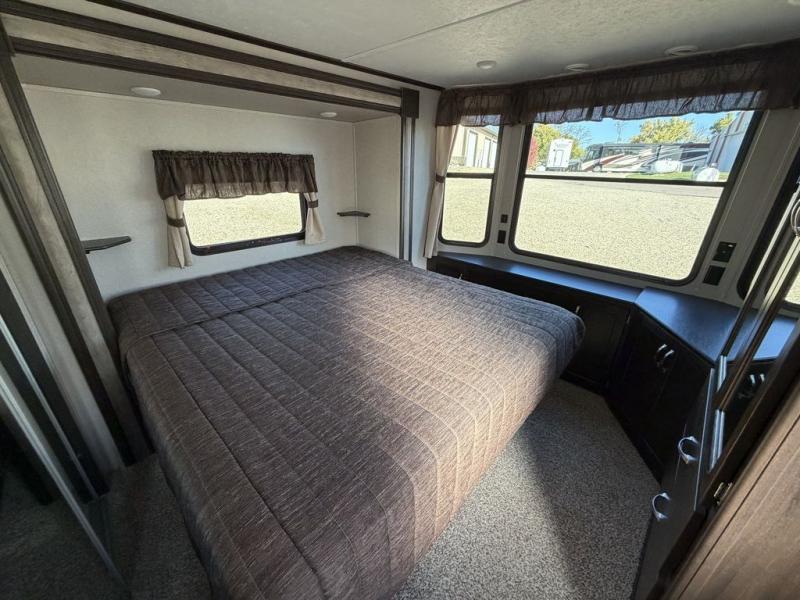 Make yourself at home by the lake, in the woods, or near the mountains in exceptional comfort each time you want to get away. With the extra sleeping space that comes from the sofa sleeper, the double size loft above the bathroom, and the king-size bed slide, you will be able to invite friends and family to join you on your excursions. You can feed everyone warm meals using all the appliances in the spacious kitchen, and the large pantry allows you to store plenty of paper goods and snacks. The free-standing table with four chairs will deliver many nights of fun as you gather together for dessert and a game of cards, and with one of the two entry doors leading directly into the private bedroom, you will be able to slip in and out for those early morning hikes or fishing trips.