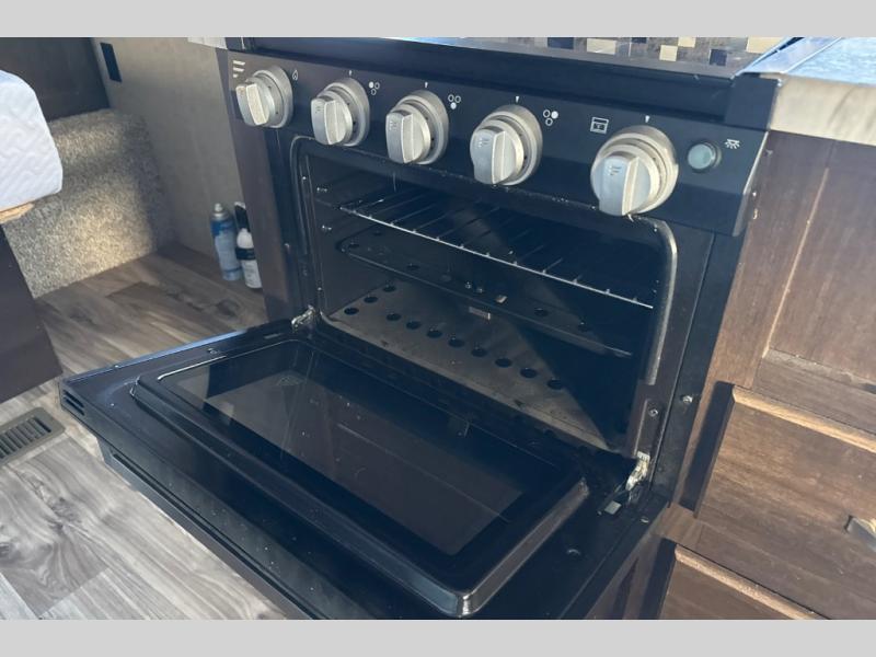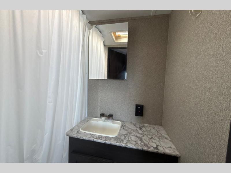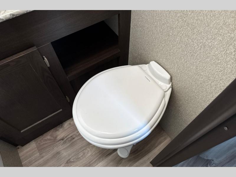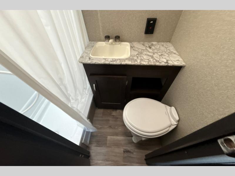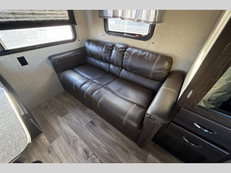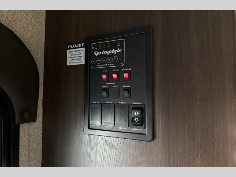 Find everything you need for your next camping trip inside this Springdale travel trailer by Keystone. This model has a front queen bed for mom and dad to get a good night's rest, and in the back, the sofa and the booth dinette both fold down for the kiddos to share. Take the party outside and put up the adjustable power awning for some time in the shade. You even have two exterior speakers for listening to the radio, your favorite music, or movie.