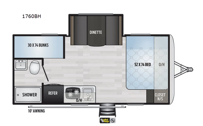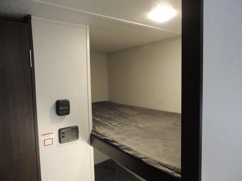 Do you desire a relaxing weekend getaway? Well then, check out this Keystone Springdale Mini 1760BH travel trailer! It features a set of bunk beds that your kiddos are sure to love, and next to the bunk beds conveniently located is the rear full bath for easy access. You can comfortably enjoy your delicious meals at the booth dinette or even transform it into an extra sleeping space. In the front, there is a 52"x 74" sized bed with overhead cabinets, a closet, and a nightstand all to help you enjoy a good night's rest!