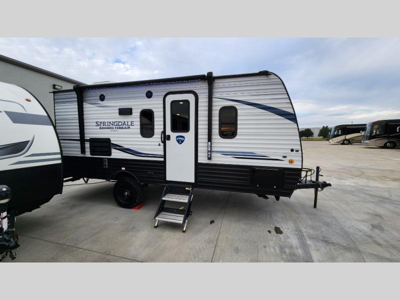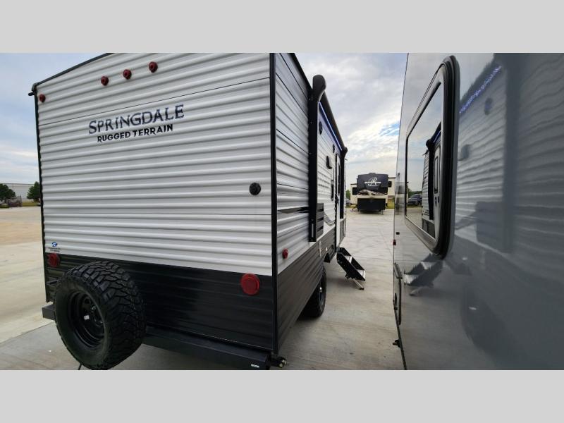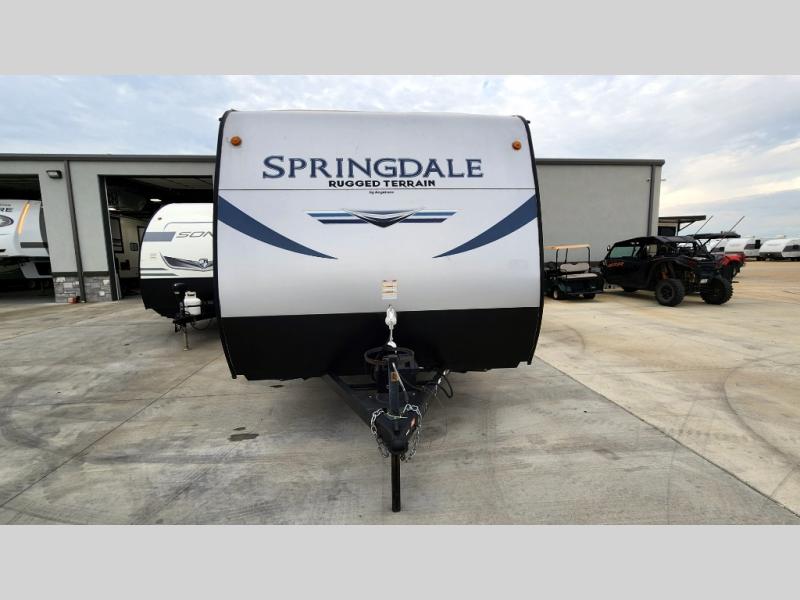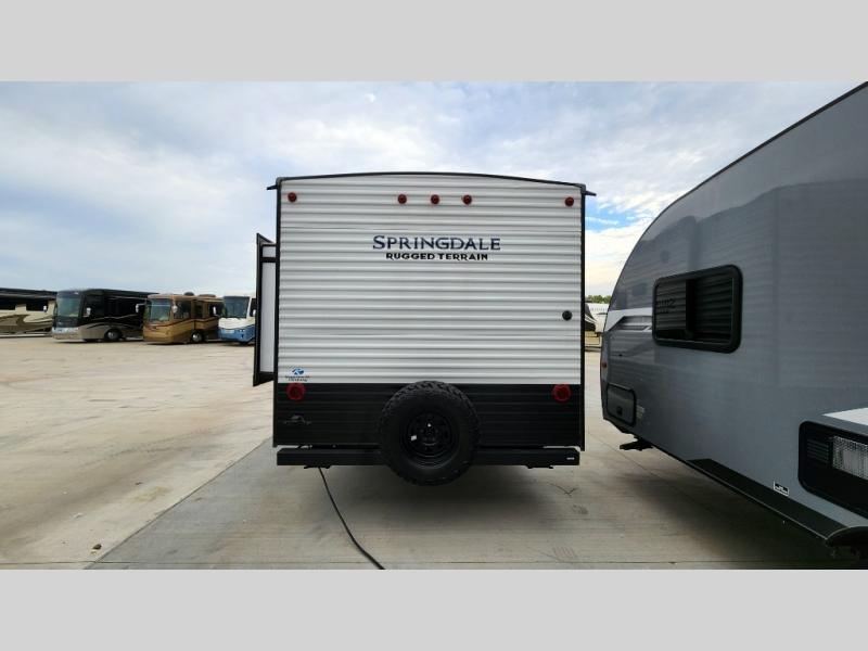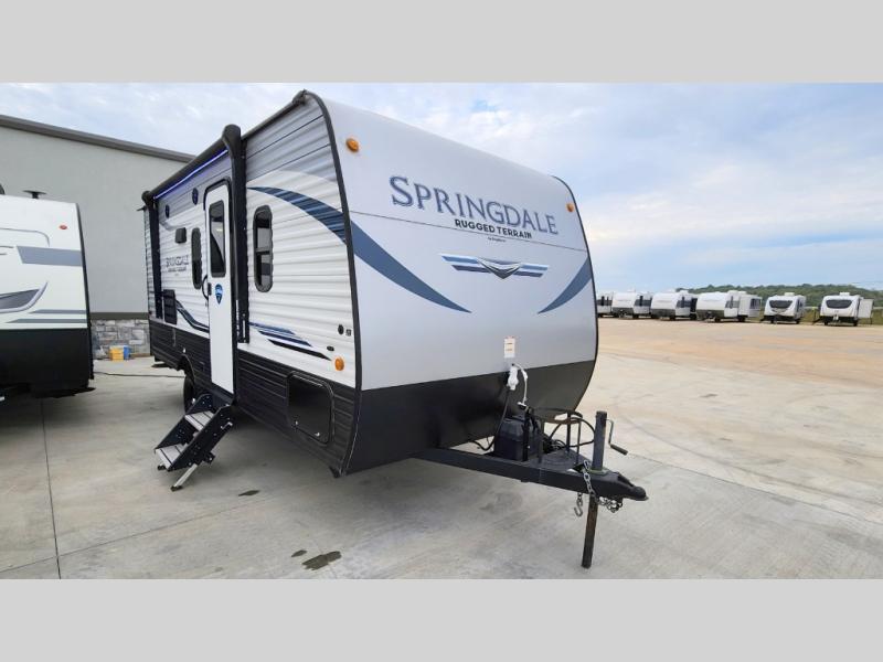 Get ready for any camping trip whether near or far! You will want an easy to tow, lightweight Keystone Springdale Mini travel trailer or toy hauler. These models have tinted safety glass windows, a mega exterior pass through storage area, E-coated corrosion-resistant wheels for a smoother ride. Inside you will enjoy plenty of features such as the cable TV hookup with a booster, the sleek black Furrion microwave, plus there is LED lighting so that you can see clearly whether day or night. There is also a CD/Bluetooth radio and a reversible bedspread, plus so much more! So don't waste anymore time, come choose today the Keystone Springdale Mini travel trailer or toy hauler that best suits you!