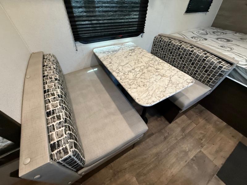 For a lightweight travel trailer that can easily accommodate your family you will want this Springdale Mini 1800BH! Your kids will enjoy their own space with the rear set of 32" x 75" bunk beds. Mom and dad can get a good night's rest on the front queen bed and if needed the booth dinette can easily sleep a person or two small children. In the rear left corner of this model is the rear corner bathroom where you can freshen up after a long hike. You will not be lacking in storage with all of the overhead cabinets plus the exterior pass through storage big enough to hold your outdoor gear!