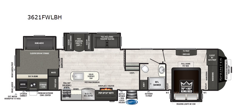 Keystone Sprinter fifth wheel 3621FWLBH highlights: