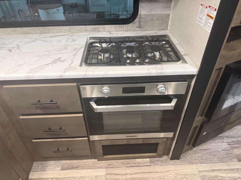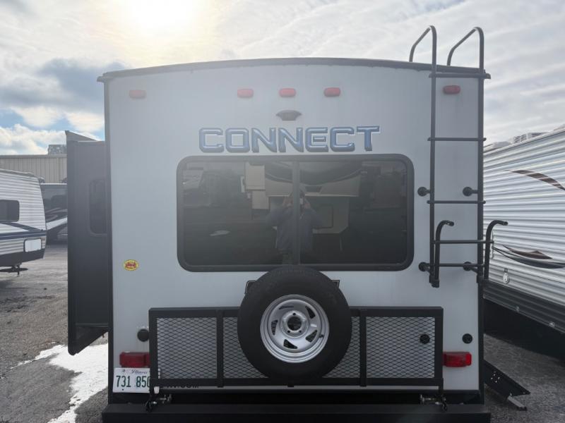 It will be easy to get connected with nature when you have this Connect travel trailer! The 80" U-shaped dinette is such a convenient feature because it can serve multiple purposes, and it also contains 36" storage bins below so that you can keep necessary items close by and easy to grab. The 70" sofa with end tables on either side will be just the spot to sit down with an ice-cold beverage after you just spent all afternoon sweating outside, and when you walk inside through one of the two entry doors, you will be met with a delicious aroma coming from the meal that is cooking in the 22" oven.
