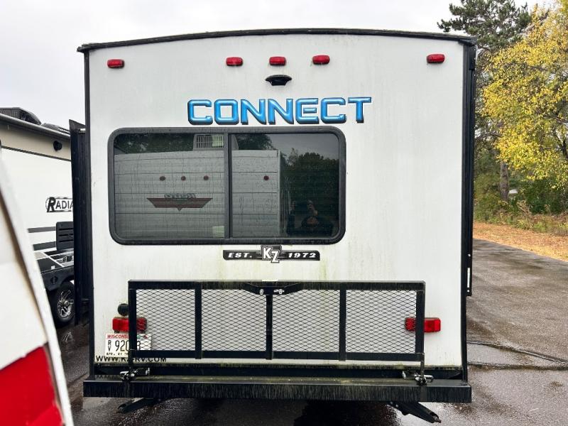 The KZ Connect travel trailer lets you connect your modern life to your explorative spirit! While you journey to your favorite locations, you will still be able to enjoy all of the many conveniences you love about your own home. The Connect is reliable and sturdy with its one-piece seamless roof with SuperFlex roofing material, its 3/8" fully walk-on roof decking, and its protective front diamond plate. Each Connect comes with extra-large baggage doors with magnetic catches so that your gear also has a comfortable place to call home, and the 71" flip-down storage rack on the back of the Connect will be amazingly helpful as you tow your bikes to the campsite. Not only is the exterior enticing, but so is the interior with its multimedia sound bar stereo, motion-sensor lighting, and color-accented shower walls.