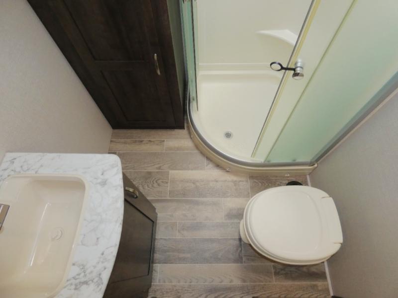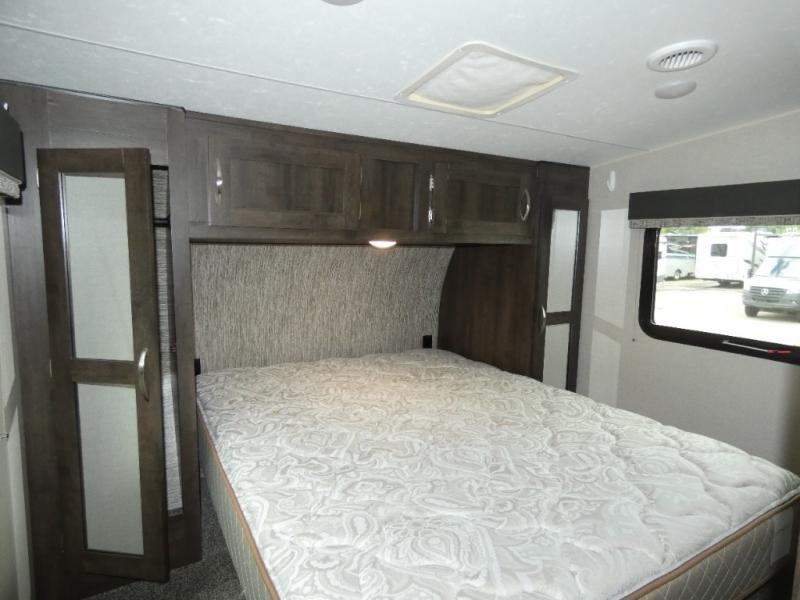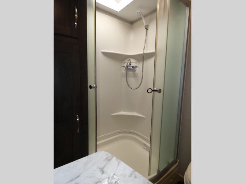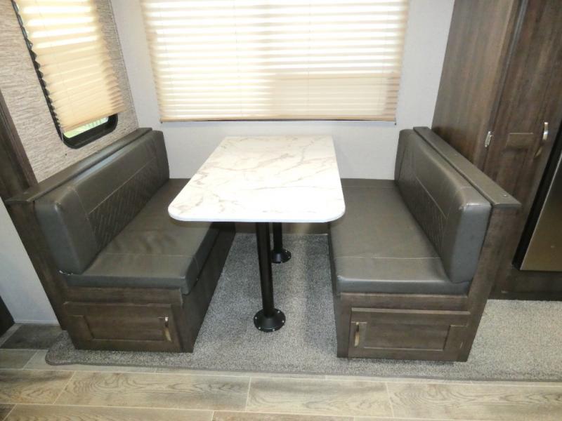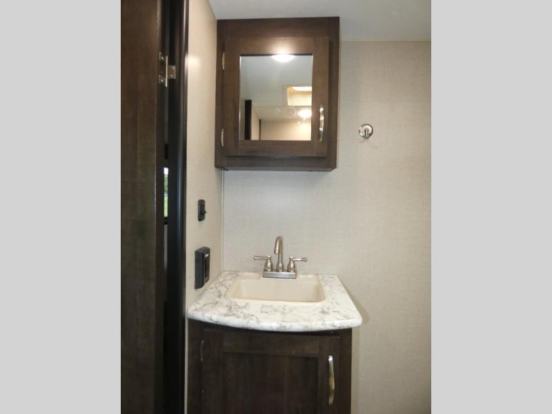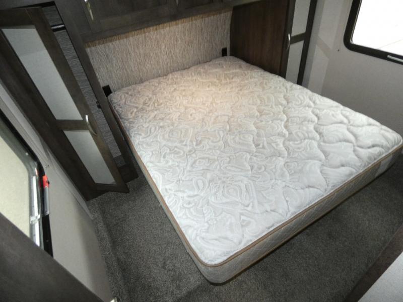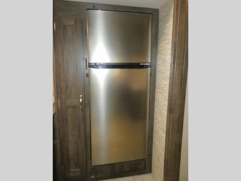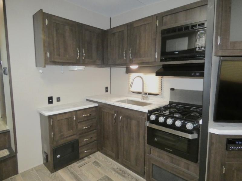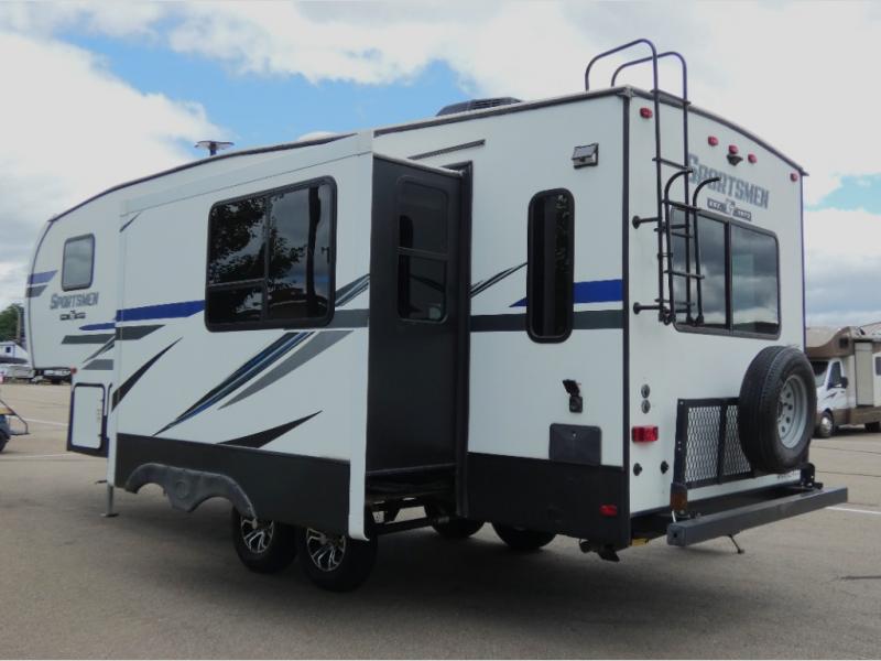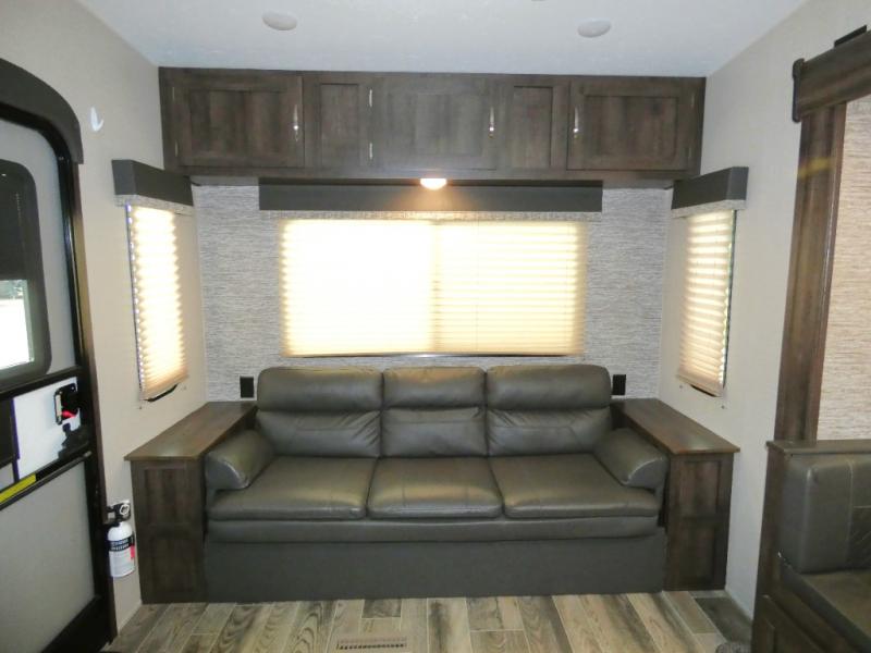 Take your family away in a reliable unit like this Sportsmen fifth wheel! As you spend the night sleeping on the queen-size bed in the front master suite, you'll look forward to waking up in the morning and having a delicious breakfast that has been easily prepared on the three-burner cooktop and in the oven or stainless steel microwave. And if you would rather spend your time adventuring instead of making meals, you can simply grab some cereal from the pantry and then grab some milk from the 8 cubic foot refrigerator.