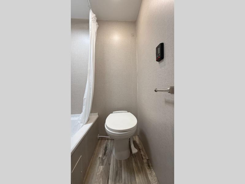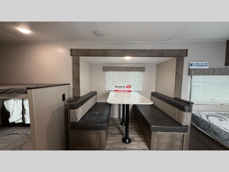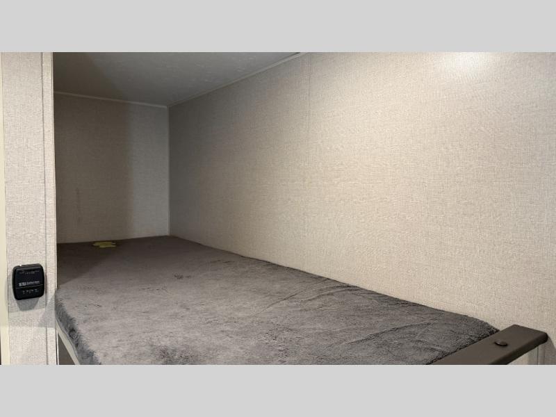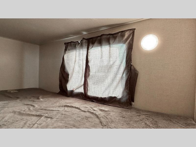 This family-friendly Sportsmen Classic travel trailer gives you sleeping space for five when you fold down the dinette at night. The bunk beds offer a space-saving way for the kids to love going to sleep at the campsite, plus you can enjoy your own 54" x 80" bed at night. The 6 cu. ft. refrigerator will hold all your cold food, and the overhead cabinets can hold your dry goods so that you can make a warm meal on the two-burner range. The stainless steel round kitchen sink will allow you to wash dishes and brush your teeth while someone else takes a shower in the private bathroom. While outside, you can be protected from the elements under the 14' power awning, and the pass-through storage compartment will house the larger outdoor gear.