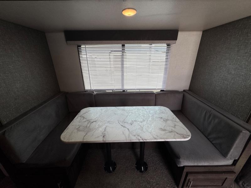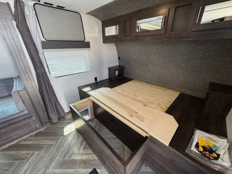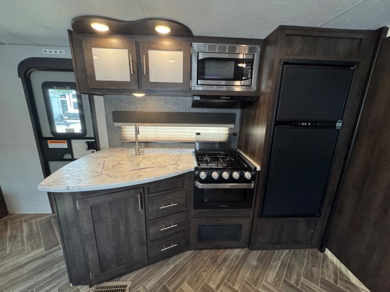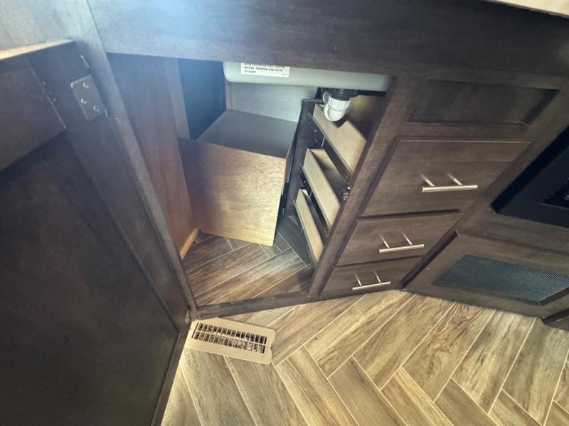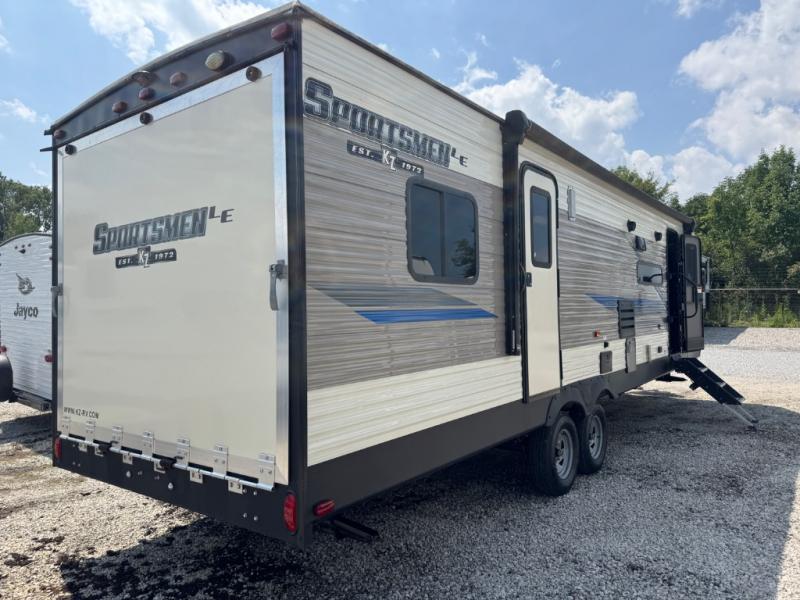 With any KZ Sportsmen LE travel trailer or toy hauler, you will be able to extend your camping season thanks to the optional Climate Package, which includes an insulated and enclosed underbelly. The new aerodynamic front profile with a smooth metal front will not only be eye-catching, but will help save on fuel mileage as you travel to your destination and you'll appreciate the flip-up solid entry steps that provides sturdy access into your unit. Each model features a power awning with LED lights, exterior speakers with LED lights, and a lighted power tongue jack with a hitch light for easy set-up every time. Inside, you'll enjoy many comforts and conveniences, like the king bed mattress, the dinette doors 36" pullout storage bins in the travel trailers, two 6.5" interior speakers, and the multi-media sound bar stereo with Bluetooth, HDMI and USB charge. Choose your favorite layout today and start camping tomorrow!