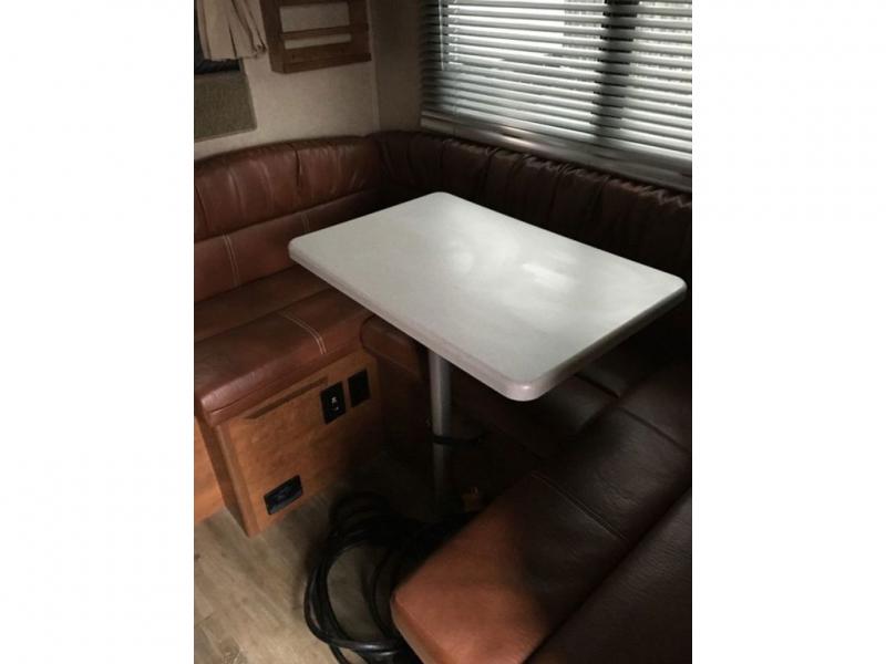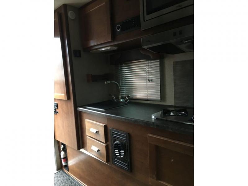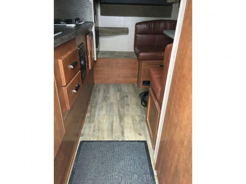 Traveling has never been easier than in this Lance truck camper, so it's no wonder that this model is one of the most popular choices. This camper has been thoughtfully designed in order to maximize the use of space, like the addition of the multi-functional U-shaped dinette that gives you an area to gather together for dinner and later to sleep at night. All of your needs will be met in this truck camper because of the spacious wet bath and fully equipped kitchen that even has a silverware organizer and mini blinds above the galley, dinette, and the cab-over.