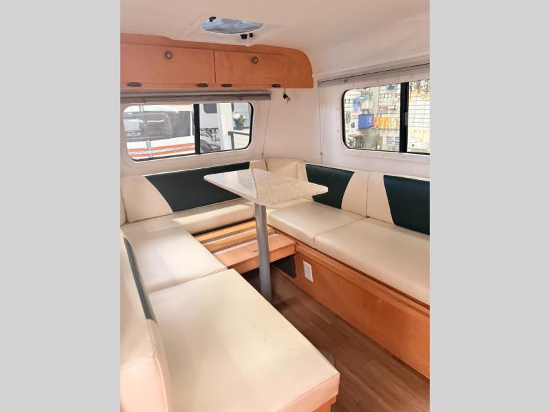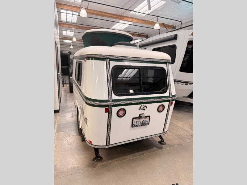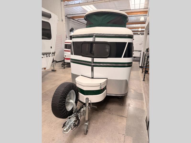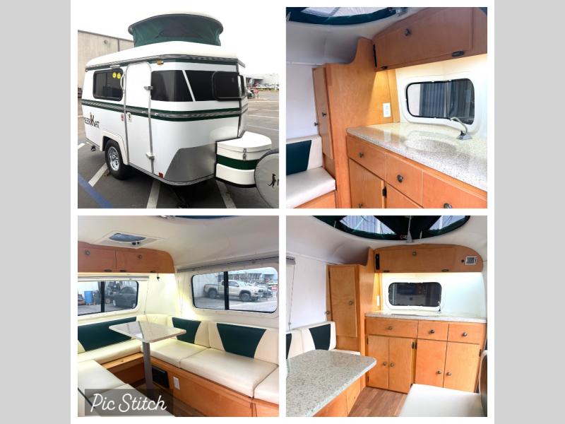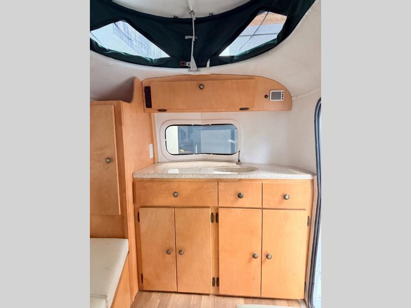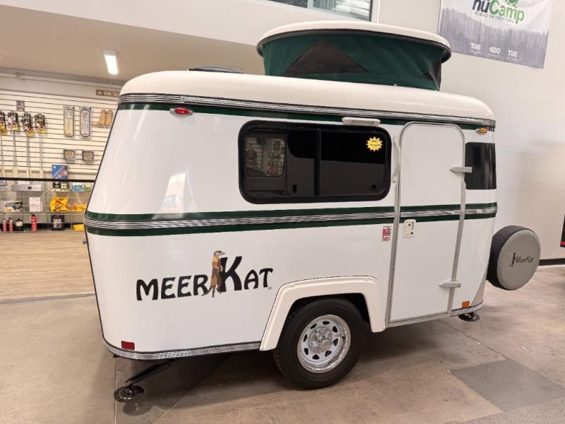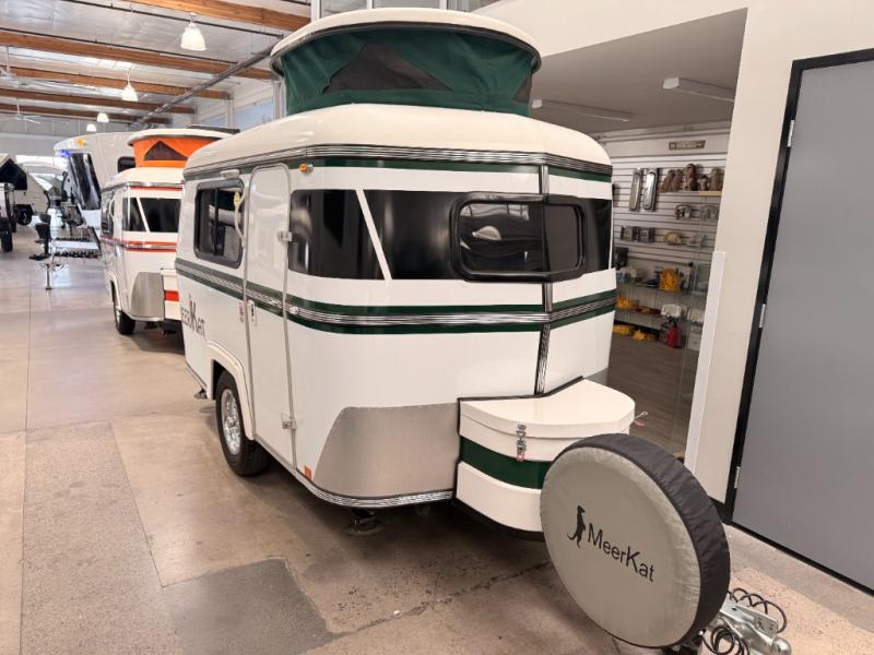 Bigger is not always better, and this little MeerKat will prove that to any interested camping couple that is looking to tow behind their everyday car. The MeerKat provides you a step up from tent camping where you can enjoy a dry place to sleep, eat, and store your things easily. And the included porta potty allows you to skip the public facilities in the middle of the night. The dinette table and wrap around seating can easily transform into a bed for a comfortable night's sleep. Three opening windows will allow you to enjoy fresh air circulating throughout both day and night. You will find under seating storage, plus several cabinets to tuck your things out of sight when not in use, and the front countertop provides a handy sink, plus a one burner camp stove is also available along with an icebox for your perishables. The MeerKat can easily be customized to suit your style of camping. You can add an optional awning, front storage box for more gear, a refrigerator, or induction cooktop, plus more. It's time to check this tiny camper out!
