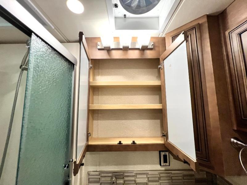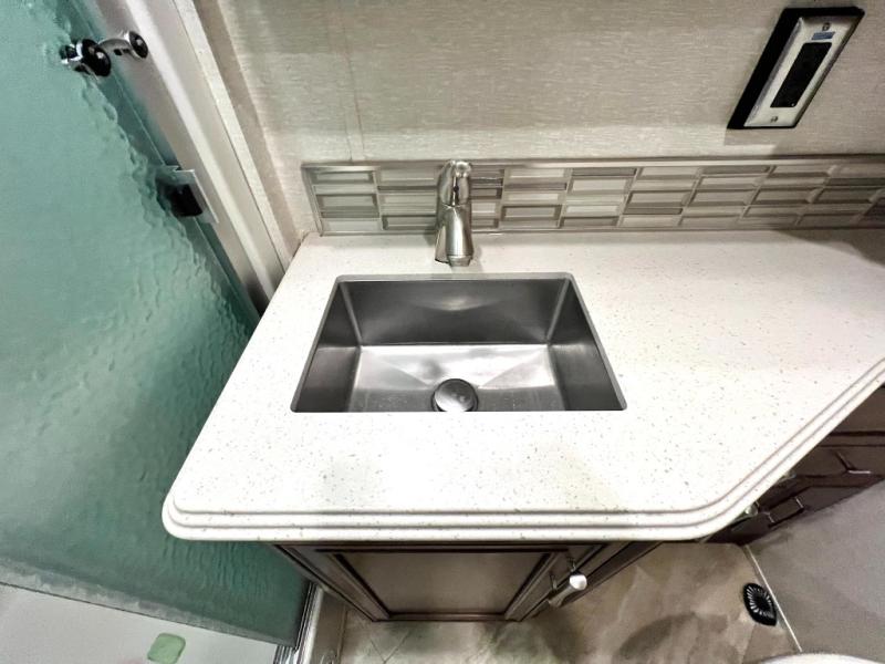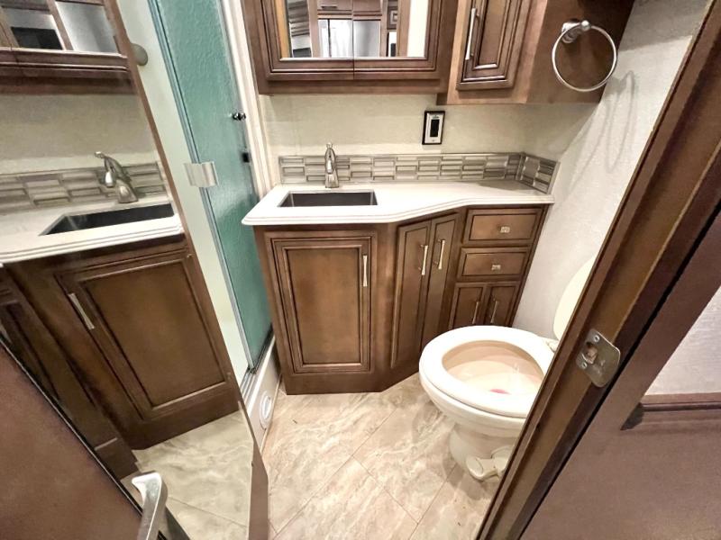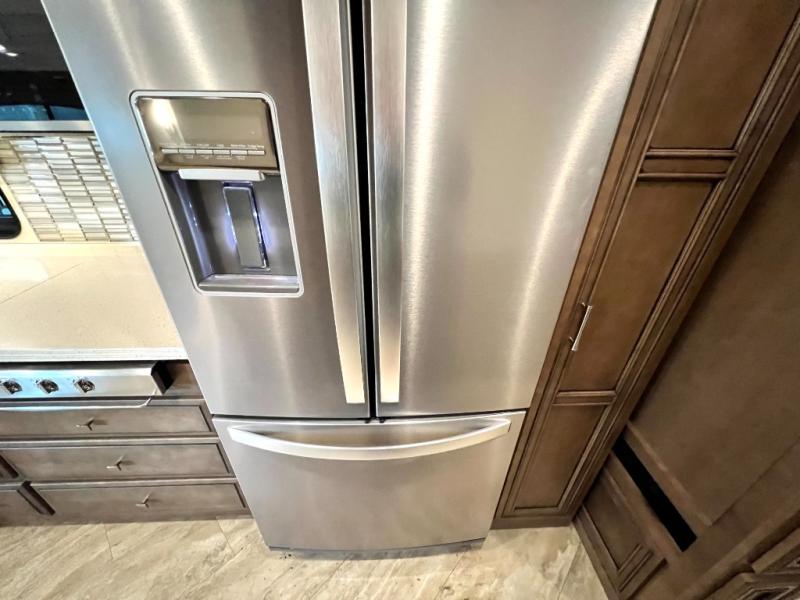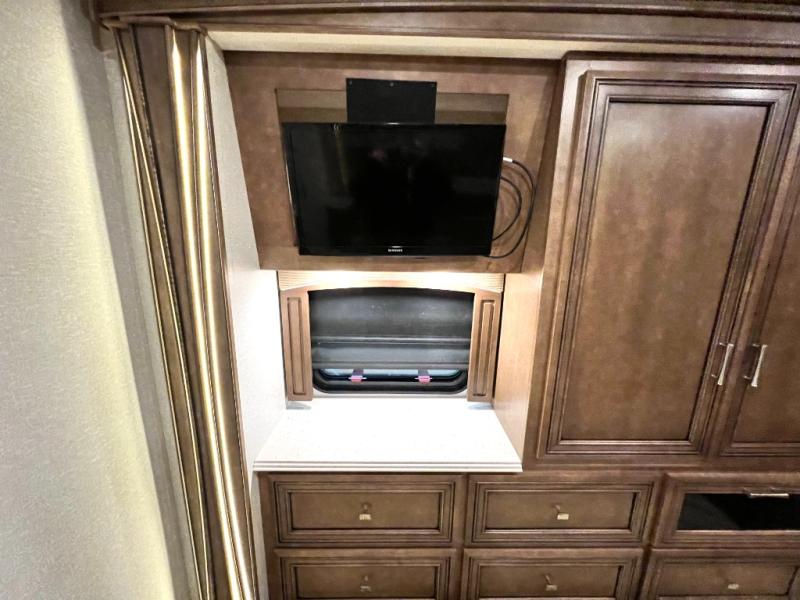 The Canyon Star Class A gas motorhomes and toy haulers from Newmar RV have been designed to impress, and they certainly do just that! Make yourself at home in a coach that has been filled to the brim with luxury, class, and sophistication. Every feature in the Canyon Star functions just as it should in your own home, so whether you plan to take your new coach out on the road for a weekend or for full time, you will find a completely smooth transition as you leave your house and set out to new destinations. Special features that are sure to get your family's attention are the Samsung LED TV with DVD player in the living room and bedroom, the Bose Solo 5 sound bar system, and the Bluetooth microphone for the Sony dash radio. Not only that, but you will also thoroughly enjoy extra touches like the water filtration system, the 30" convection microwave, and the 5.5kW Cummins Onan generator.