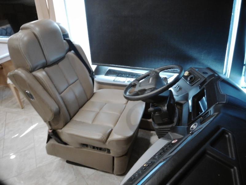 With any New Aire Class A diesel motorhome by Newmar, you will love the STAR foundation that provides a quieter ride and either a 360 or 450 horsepower Cummins diesel engine. Each cockpit features dual 9" HD monitors, six-way power-adjustable heated captain's chairs, and side and rear view cameras to keep you comfortable and safe while on the road. You'll find super-polished solid-surface countertops in the kitchen, bathroom, and bedroom, beautiful Bermuda Glazed Maple hardwood cabinets, LED lights, and Flexsteel Ultra Leather sofas and driver/passenger seats. The New Aire also features a Girard G2000 power side awning with wind sensor, remote control, and LED lights, plus a second Girard G2000 power side awning on the door side for complete comfort and convenience.