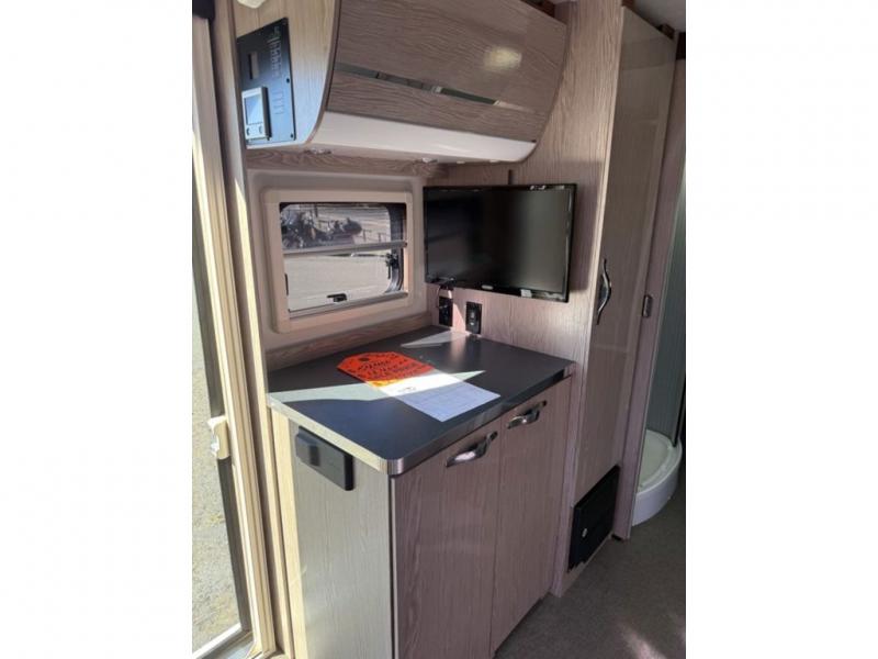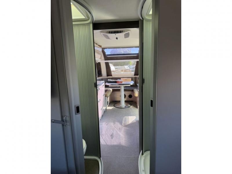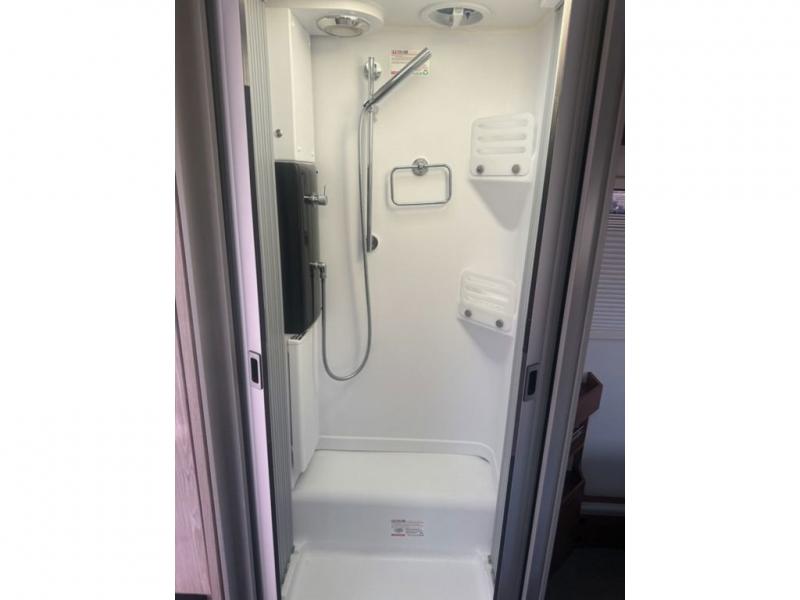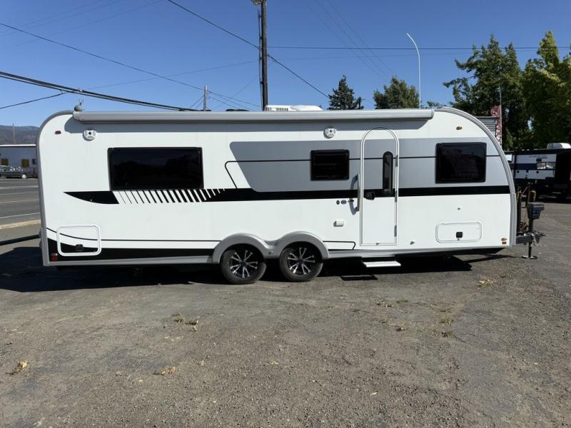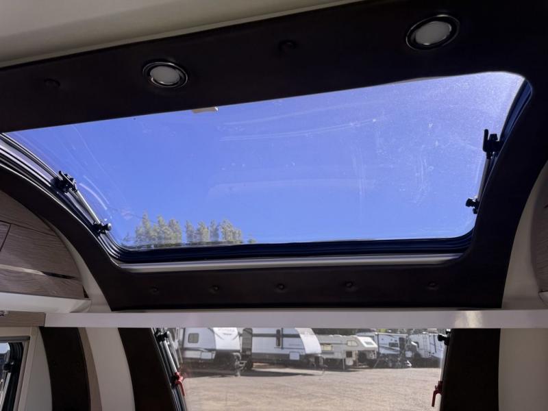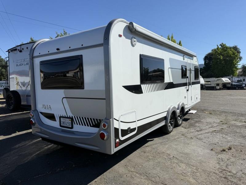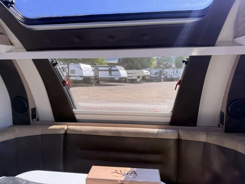Refined and ready for you and your family of four is this AVIA with a queen size bed in the rear bedroom and the U-shaped convertible dinette up front. The cook will love all the kitchen amenities including the three burner sink/stove combo, the deluxe spice racks, the convection/microwave oven with air fryer, and the three-way refrigerator. Everyone can dine around the U-shaped dinette or outside under the 16' cassette awning with Bluetooth control after grabbing your camping chairs from the exterior pass-through storage. Not only will you have all the conveniences of home, you will have your own walk-through dry bathroom, plus an elegant interior to enjoy.