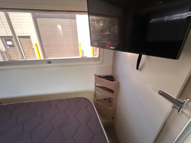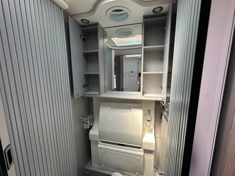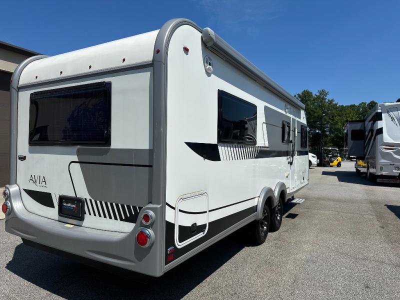 The AVIA travel trailer features Ohio Amish quality comforts inside with plenty of great views, and outside you will enjoy your favorite sounds from the premium speakers, LED amber porch lights at dusk, and a 16' cassette awning whenever you are hanging out taking in the great outdoors! The lighted entry handle with motion sensor guides you inside after an evening of campfire and s'mores. The dry bath awaits so you can easily get cleaned up to enjoy the rest of your evening inside lounging watching television on the 24" flat-screen TV, or take in a bit of constellation and star searching through the stargazer window overhead. After waking from a great night's rest, the kitchen amenities are readily available for creating a yummy breakfast feast as you prepare for another full day of adventure and fun!