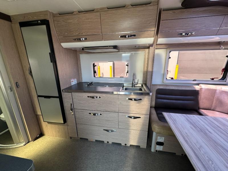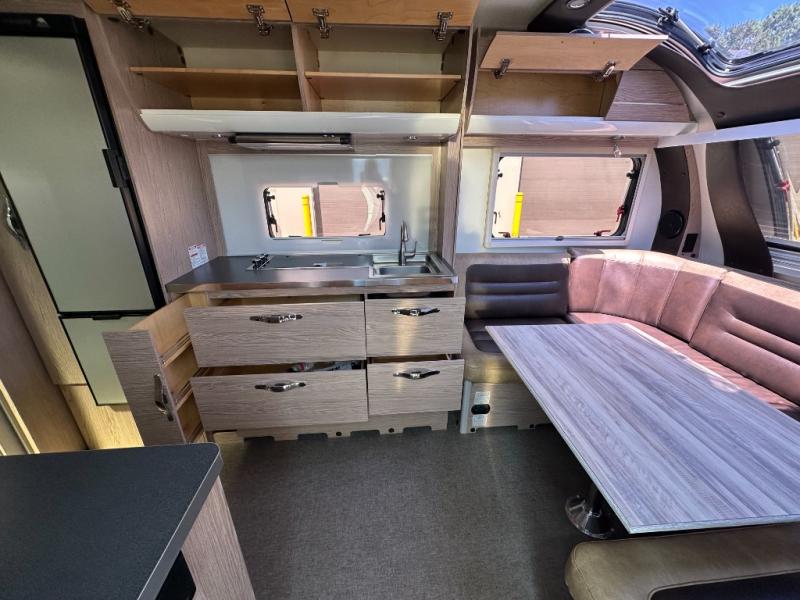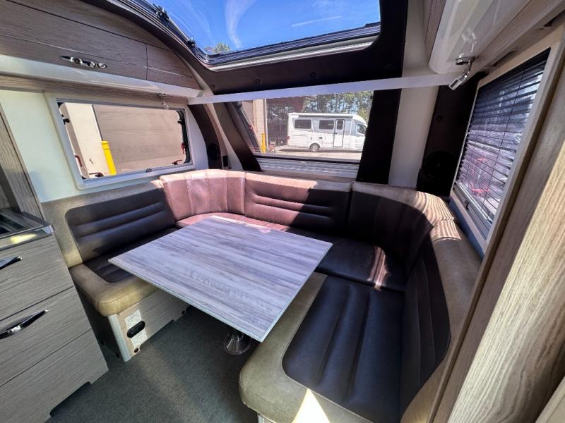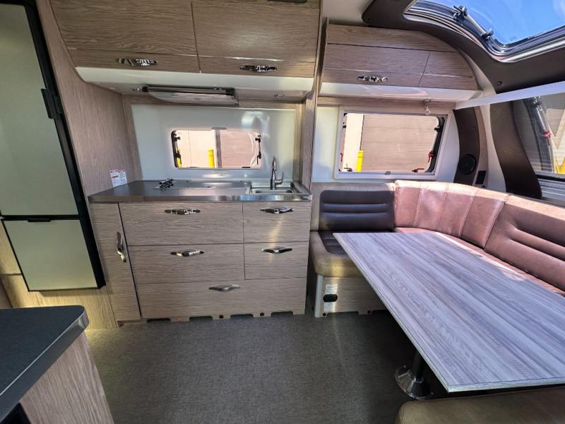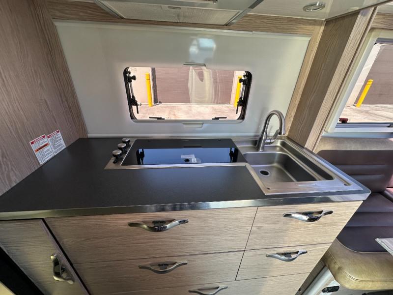 Relax in comfort when you make this nuCamp AVIA your adventure homebase. Enjoy plenty of space and spectacular views through the many windows during the daytime hours, and you will love the stargazer window for after dark views of the night sky as well. The multi-function power bed offers a place for a great night's rest, or a space to kick back and read a good book. Dining inside will be super easy with the u-shaped dinette that can easily convert to a bed at night, plus the three burner stovetop, sink, and in-drawer convection microwave oven and fryer will have you easily whipping up camp favorite meals and snacks for everyone. You will love the look of the European-styled cabinetry for stowing away all of your belongings inside, plus a pass-through storage compartment outside provides a space for your camp chairs and outdoor gear when not in use.