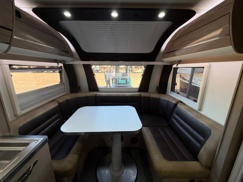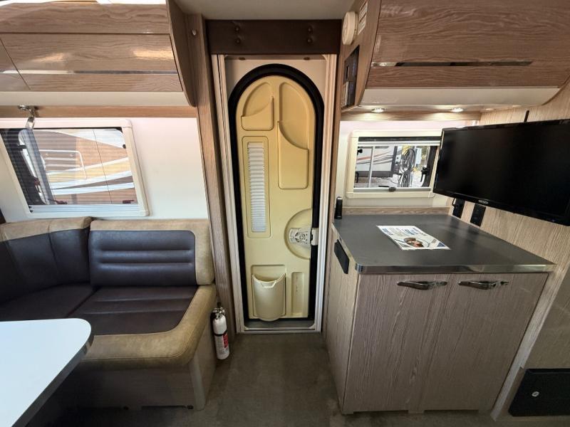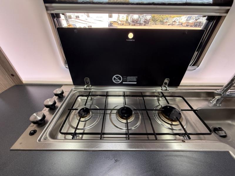 Relax in comfort when you make this nuCamp AVIA your adventure homebase. Enjoy plenty of space and spectacular views through the many windows during the daytime hours, and you will love the stargazer window for after dark views of the night sky as well. The multi-function power bed offers a place for a great night's rest, or a space to kick back and read a good book. Dining inside will be super easy with the u-shaped dinette that can easily convert to a bed at night, plus the three burner stovetop, sink, and in-drawer convection microwave oven and fryer will have you easily whipping up camp favorite meals and snacks for everyone. You will love the look of the European-styled cabinetry for stowing away all of your belongings inside, plus a pass-through storage compartment outside provides a space for your camp chairs and outdoor gear when not in use.