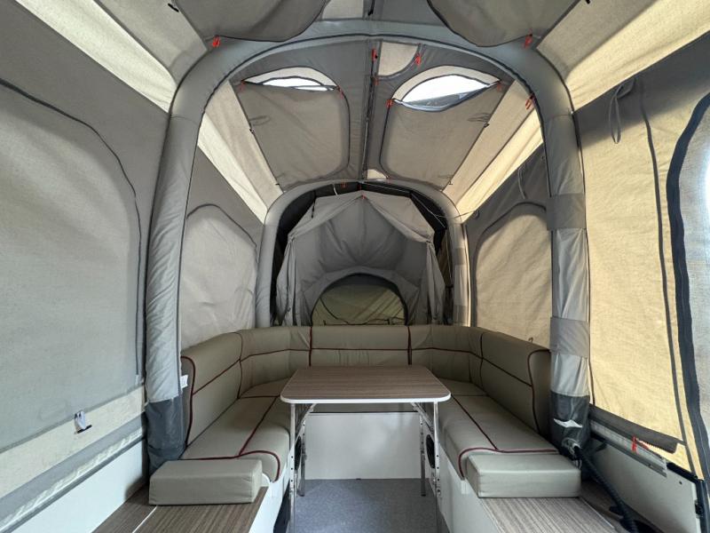 Deemed the winner of the 2018 Good Design Award, the OPUS Camper truly lives up to its trend-setting, fun-loving, trail-blazing name! Its precision engineering, lightweight design, and compact travel mode make it easy to tow with all-round visibility and excellent stabilization, which is why you'll hardly know that it's there. The strong aluminum frame provides rigidity and strength while the lightweight aluminum panels eliminate unnecessary tow weights, and the Poly-Cotton Canvas that protects the entire camper has been tested to withstand the elements and provide insulation even on cooler nights. One of the most spectacular features of the OPUS Camper is the optional AIR OPUS® Inflating Tent Upgrade. This advanced triple-layer technology completely inflates within 90 seconds at the simple touch of a button, and it envelops the OPUS Camper in an ultra-durable and fully protected shell.