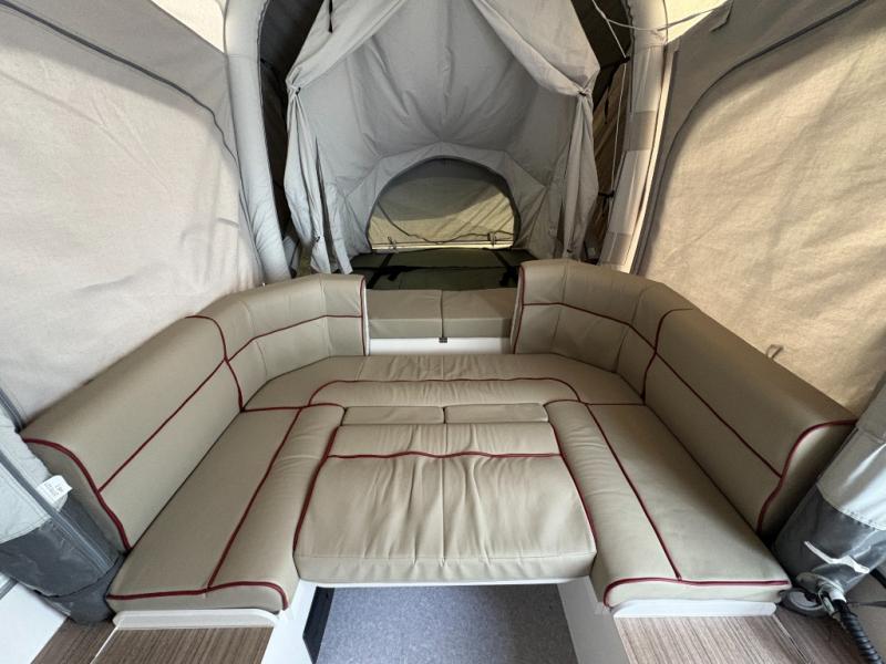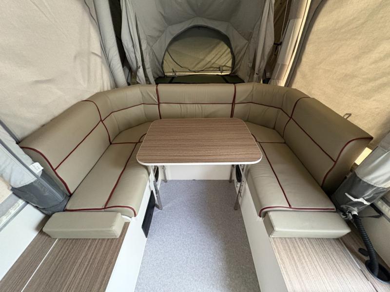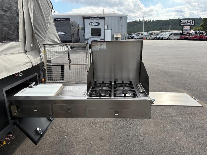 If you love to explore off the beaten path and seek out new terrain, this OPUS pop-up camper has been created for you! With its 15" off-road tires and beefed-up suspension, this unit is the perfect companion for all of your upcoming adventures, and the two full-size beds and U-shaped dinette allow you to bring along friends or family to join in on the fun. If you choose to add the optional full awning to this unit, you will be able to use the slide-out four-burner stove come rain or shine which gives you the true feeling of tough luxury.
