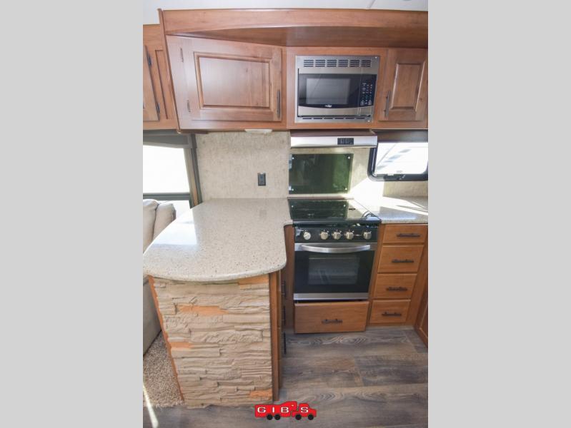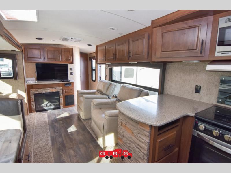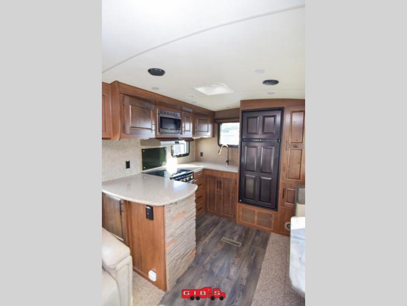 Hitch up this Black Stone 280RKS travel trailer to your favorite tow vehicle and start exploring your state. You will enjoy plenty of floor space with the large slide out in the living/dining area and the placement of the rear kitchen. Inside the front private bedroom, you can relax on the queen bed with the additional added space while you watch your favorite movie on the TV and keep your room tidy with the wardrobe slide out. Your whole group can enjoy watching a show together on the swing out 40" TV while relaxing on either the sofa sleeper or one of the two recliners, and if you're not one for shows then you can head to the mountain dinette and play a card game while you enjoy a snack. What are you waiting for, stop stalling and start a new adventure today!