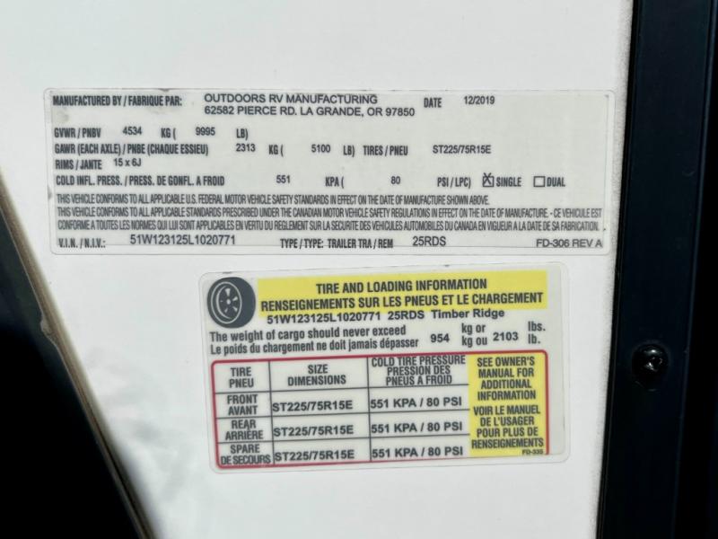 Used 2020 Outdoors RV Timber Ridge Mountain Series 25RDS Travel Trailer