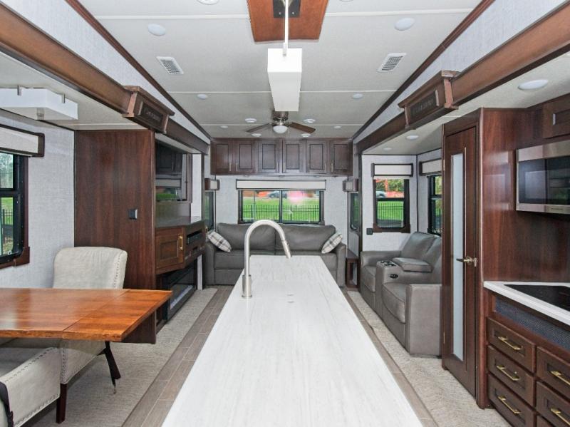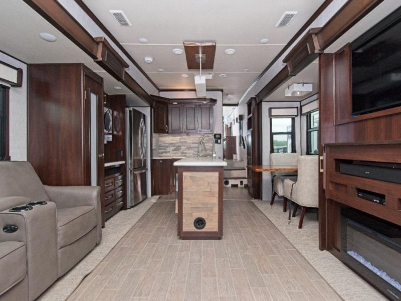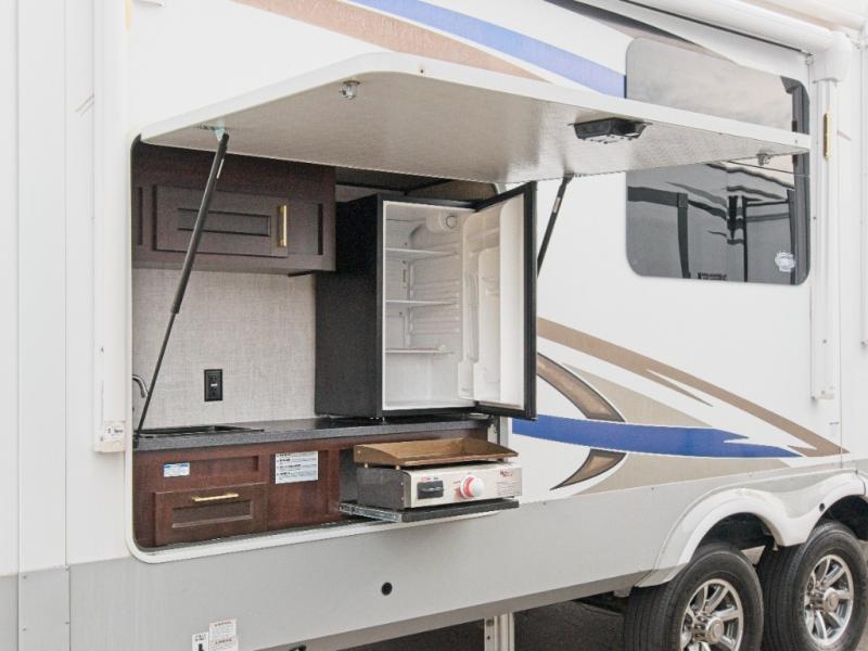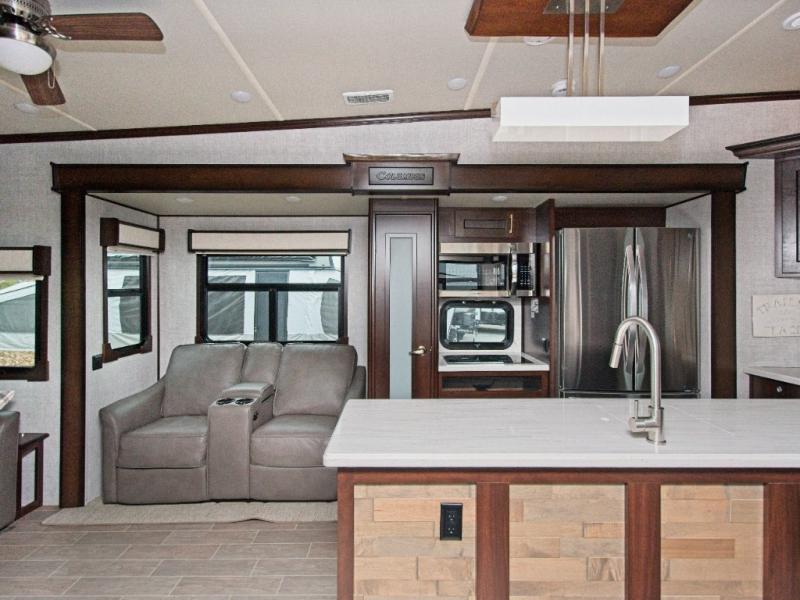 Experience ultimate RV luxury with the Palomino Columbus 1492 366RL—featuring a chef-inspired kitchen with a spacious island and a fully equipped outdoor kitchen for unforgettable adventures.