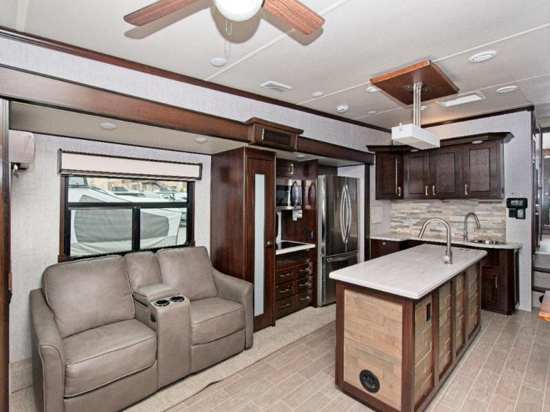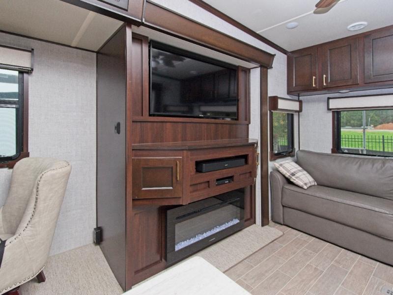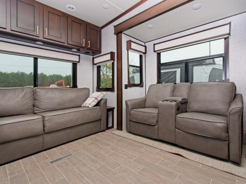 Relax in power theater seating with USB charging and storage, perfect for unwinding after a day of adventure. Enjoy your favorite shows on the 50" LED TV or simply take in the scenic views with a drink in hand.