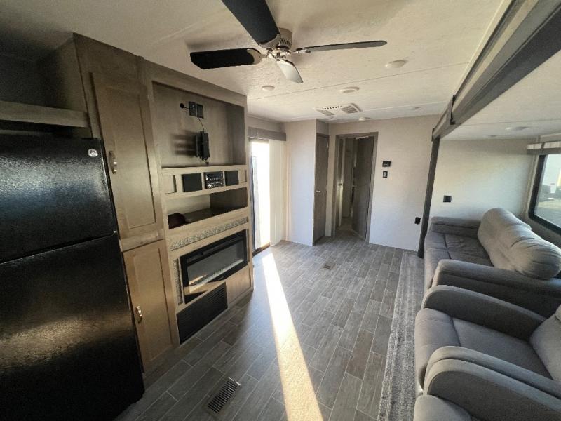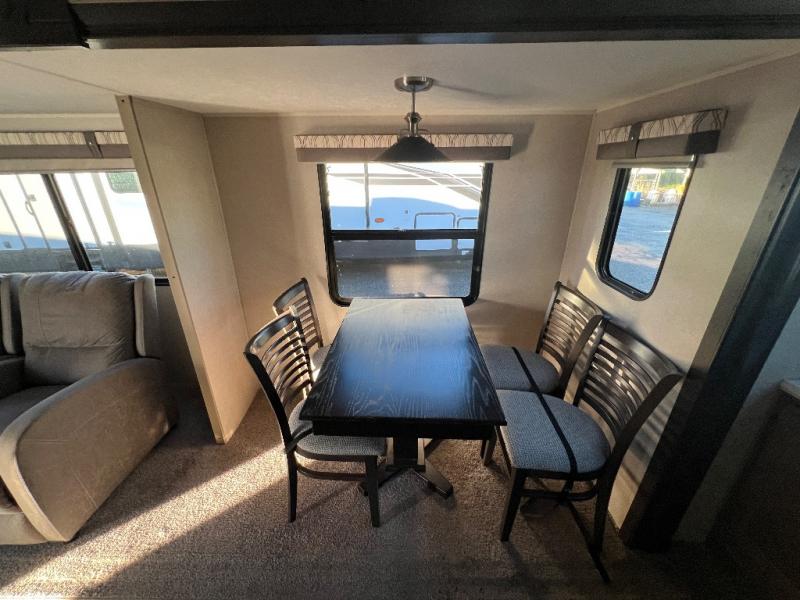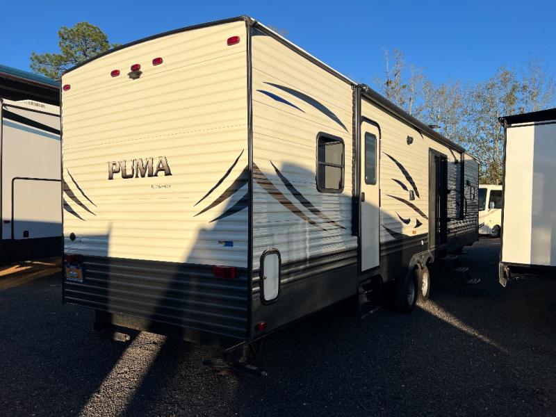 With residential furnishings and comfortable features, the Puma Destination trailers from Palomino RV are the best choice when it comes to leisure living! On the exterior, you will be happy to find reliable construction, like the powder-coated frame, the tinted safety glass, and the super lube axles. A 35,000 BTU furnace keeps the interior at just the right temperature when the leaves have started to fall off the trees, and if you've chosen to camp out in the heart of summer, you'll surely appreciate having a 13,500 BTU air conditioner to keep you cool. Keep the atmosphere light and cheerful whenever you get away with some happy music playing on the Bluetooth stereo!