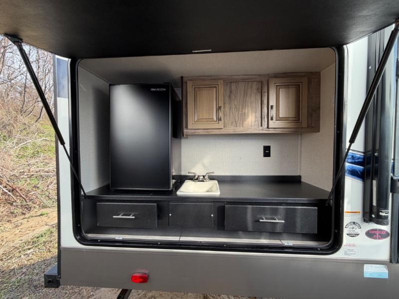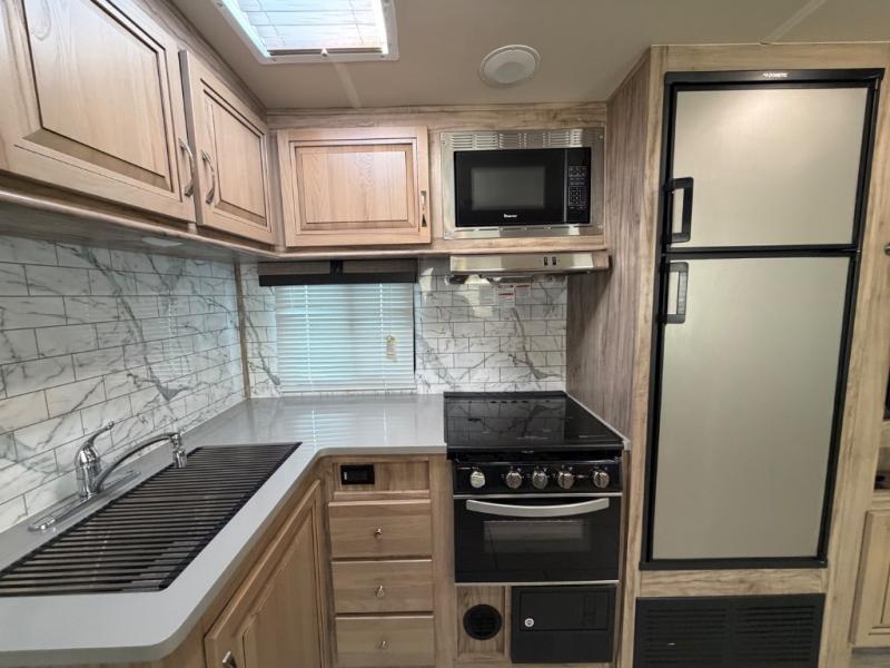 Each Palomino SolAire Ultra Lite travel trailer has loads of amenities that are revamped and up to date. From the modern style, the Furrion HDMI DVD/Bluetooth stereo, and the solid-surface countertops to the bathroom skylight that lets the sun's rays shine through, you can camp in comfort wherever you land. The Dexter Tor-Flex torsion axles provide a smooth ride, the barreled ceiling gives you more head room to move about, and the power tongue jack makes set-up easier. There is more to love, so choose one of these SolAire Ultra Lite travel trailers today for your next adventure!