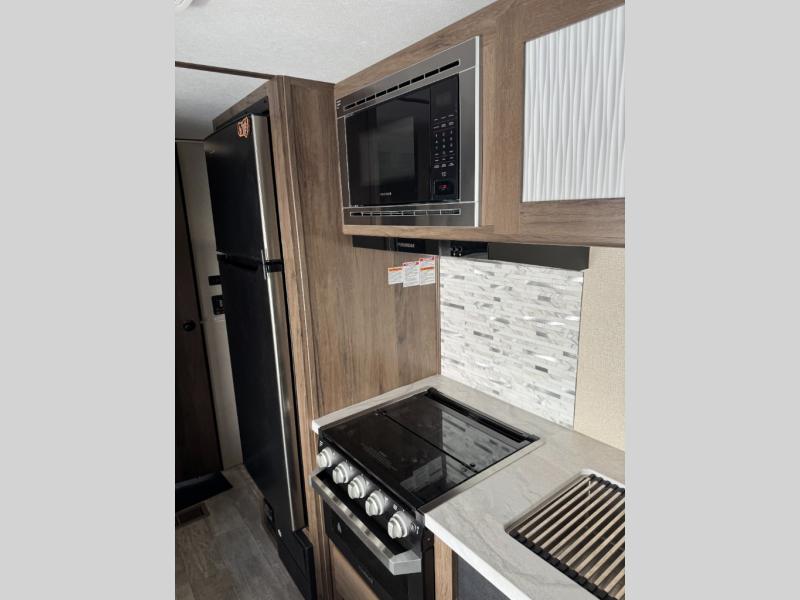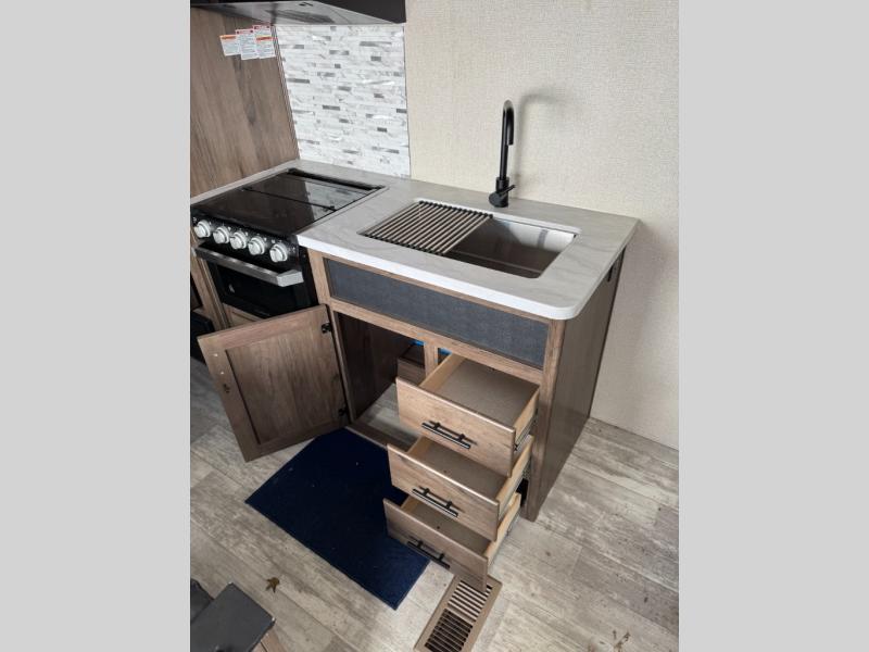 With any Avenger travel trailer you will feel secure knowing the EVERLAST Construction provides 2" wall construction on 16" centers, and cross banded construction. You will appreciate the outside shower providing an extra place to clean off, as well as the marine grade outdoor speakers, allowing you to enjoy being with family and friends outdoors. Each unit features a fully enclosed underbelly, and the extra large exterior grab handle provides safe entrance. The mandatory Advantage Package includes additional features that you will find useful such as a restaurant style kitchen faucet, LED interior lighting, a large double door refrigerator, and a flush mount glass range cover. It's time to take your next journey in an Avenger travel trailer by Prime Time RV!
